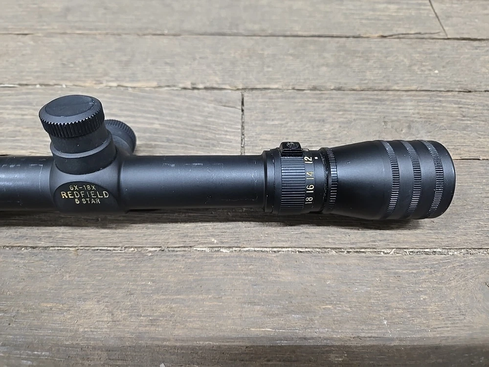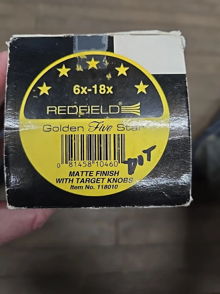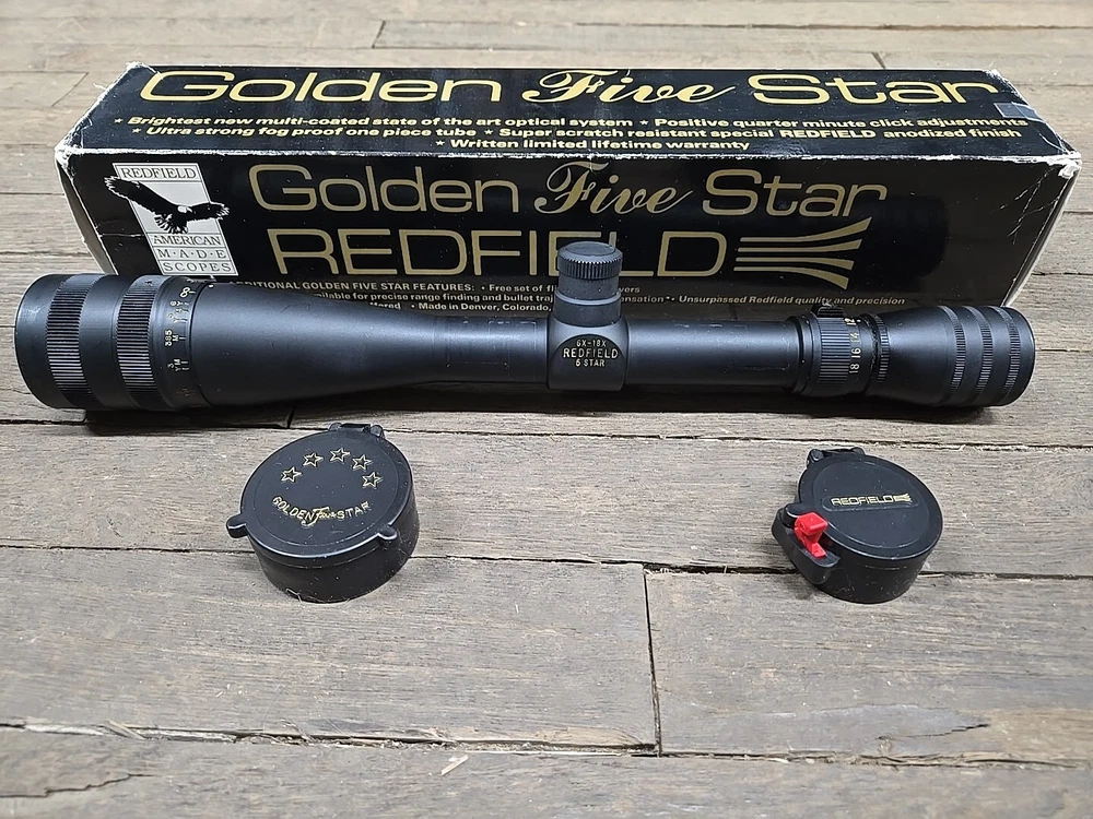 Brand: Redfield MPN: 118010 Color: Black Country/Region of Manufacture: United States Objective Lens Diameter: 40 mm Model: Golden 5 Star Maximum Magnification: 18x Reticle Type: Target Dot Type: Target Scope For Gun Type: Rifle