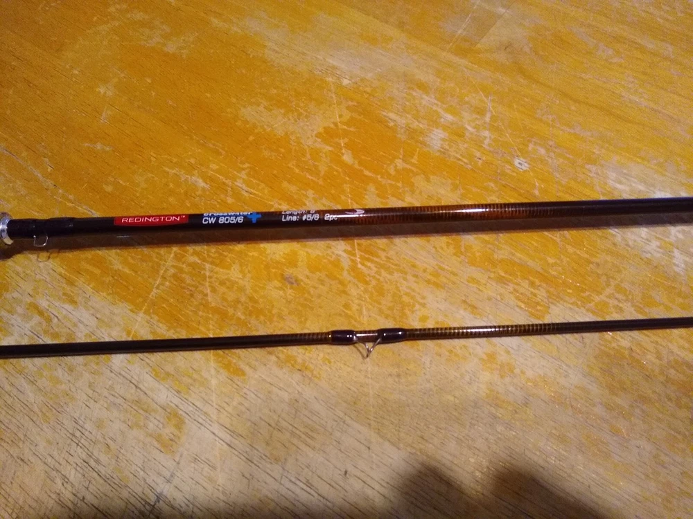 This is a Redington Crosswater CW 805/6 8' 2pc 5/6 Wt Fly Fishing Rod With Redington Sleeve and Tube. The rod is used but in very good condition with some slight darkening of the cork. Otherwise very nice! Please check out the pictures and thanks for shipping. Shipped with USPS Priority or Ground Advantage Mail in light PVC Pipe for safe shipping. Only ship to the USA!