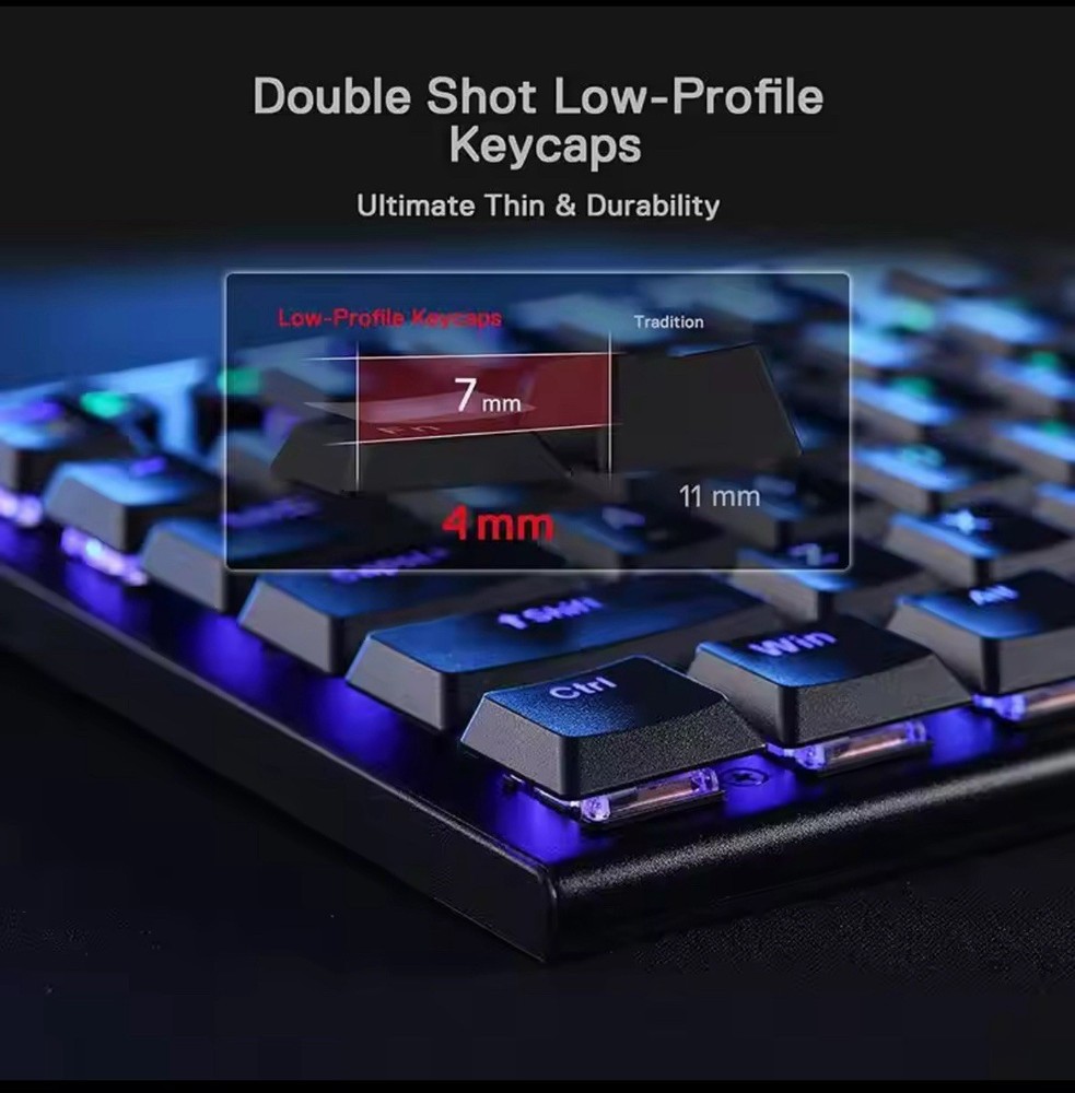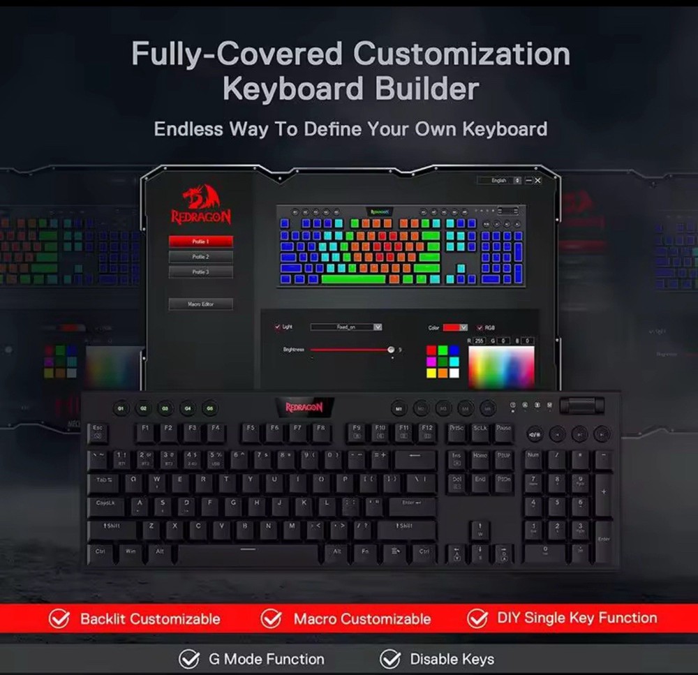The Redragon K618 Horus Wireless RGB Mechanical Keyboard with Red Switches is a high-quality keyboard designed for gaming and computer use. It features a sleek black design, ABS material construction, and a QWERTY layout for standard typing. With wireless connectivity and multimedia integration, this keyboard offers convenient features for an enhanced typing experience. The 3-mode connection and enhanced function keys make it versatile for various tasks, while the illuminated RGB lights add a stylish touch. The rechargeable battery with a 1-3 months battery life ensures long-lasting use, making it a reliable choice for users looking for a durable and efficient keyboard.