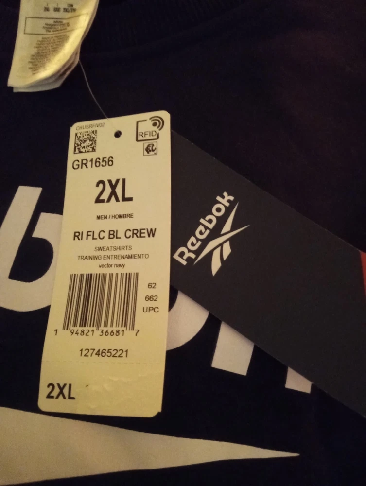 This Reebok pullover is a 2XLT size in blue, made of a blended fabric. It features a crew neck, long sleeves, and a solid pattern. Designed for activewear, it has a regular fit and is lightweight with stretch capabilities, suitable for all seasons. The pullover is easy to care for and is ideal for activities like gym training and running.