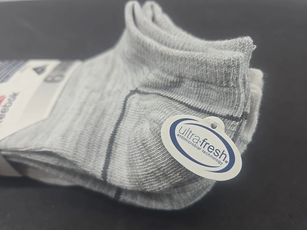Reebok 6 Pack Mens Low Cut Socks Pro-Series Grey White Lycra Size 6 - 12.5 Shoe