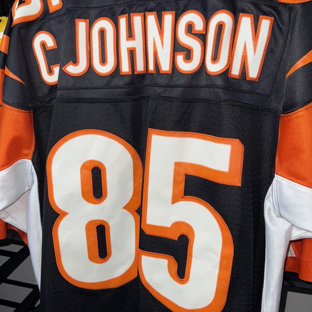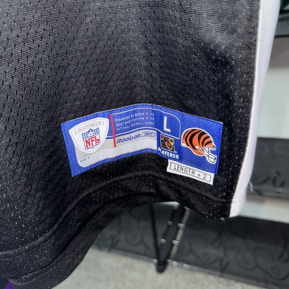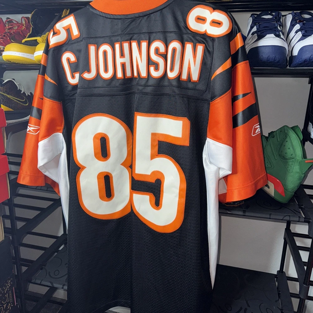 Show your love for the Cincinnati Bengals with this Reebok Chad Johnson #85 Sewn Men's Jersey. The black jersey features the official team logo and is made from high-quality materials for maximum comfort and durability. It is officially licensed by the National Football League (NFL) and is perfect for any football fan. The jersey is designed with a size L and is perfect for men who want to show their support for the team. It is a great addition to any football fan's collection and is perfect for game day or everyday wear. Get your hands on this Reebok Chad Johnson #85 Sewn Men's Jersey and show your love for the Cincinnati Bengals!