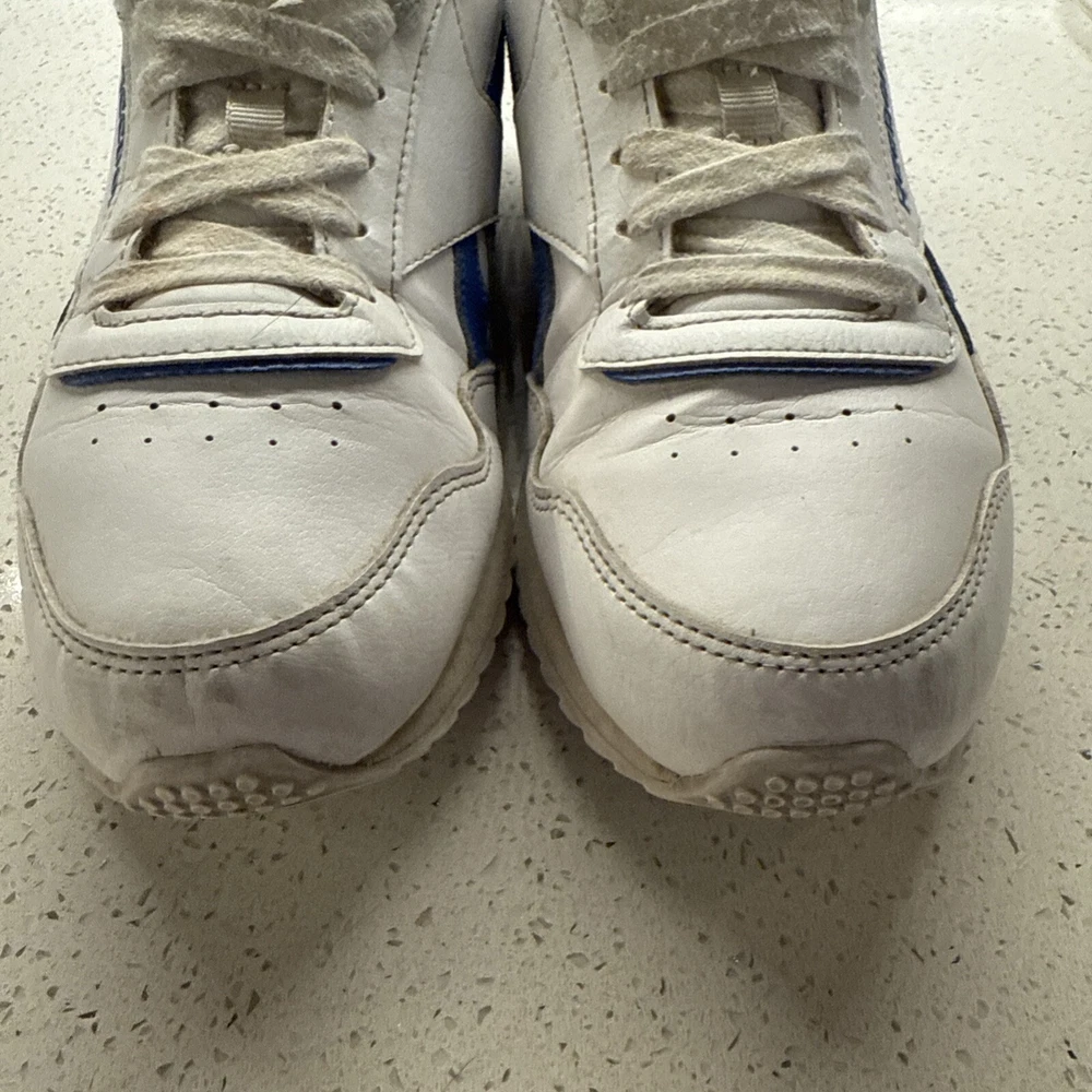 Elevate your athletic style with these Reebok Classic Leather men's running shoes. Crafted with a white leather upper and synthetic lining, these sneakers feature a lace-up closure for a secure fit. The rubber outsole provides traction and comfort, making them suitable for various activities such as gym training, cross-training, running, and even basketball. With a low-top silhouette and standard shoe width, these Reebok Classics Leather sneakers are perfect for any casual occasion. The foam insole ensures maximum comfort, while the rubber cleat type offers protection against wear and tear. These sneakers are a must-have for any fitness enthusiast or crossfitter.