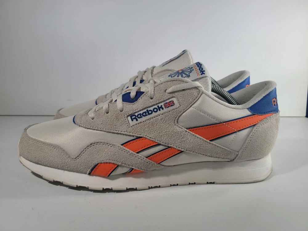 Elevate your style with the sleek Reebok Classic Nylon Men's Sneakers. These white suede lace-up shoes embody the essence of timeless fashion with a modern twist. The durable nylon upper material ensures a comfortable fit while the robust rubber outsole provides excellent traction for running and jogging activities. Available in US size 13 and UK size 12 with an EU size of 47, these sneakers feature a classic theme with a GY7277 style code. The shoes are part of the revered Reebok Classics product line and are crafted in Vietnam, ensuring a blend of quality and heritage. Whether you're hitting the pavement or just enjoying a casual day out, these athletic shoes offer both style and function for the modern man on the move.