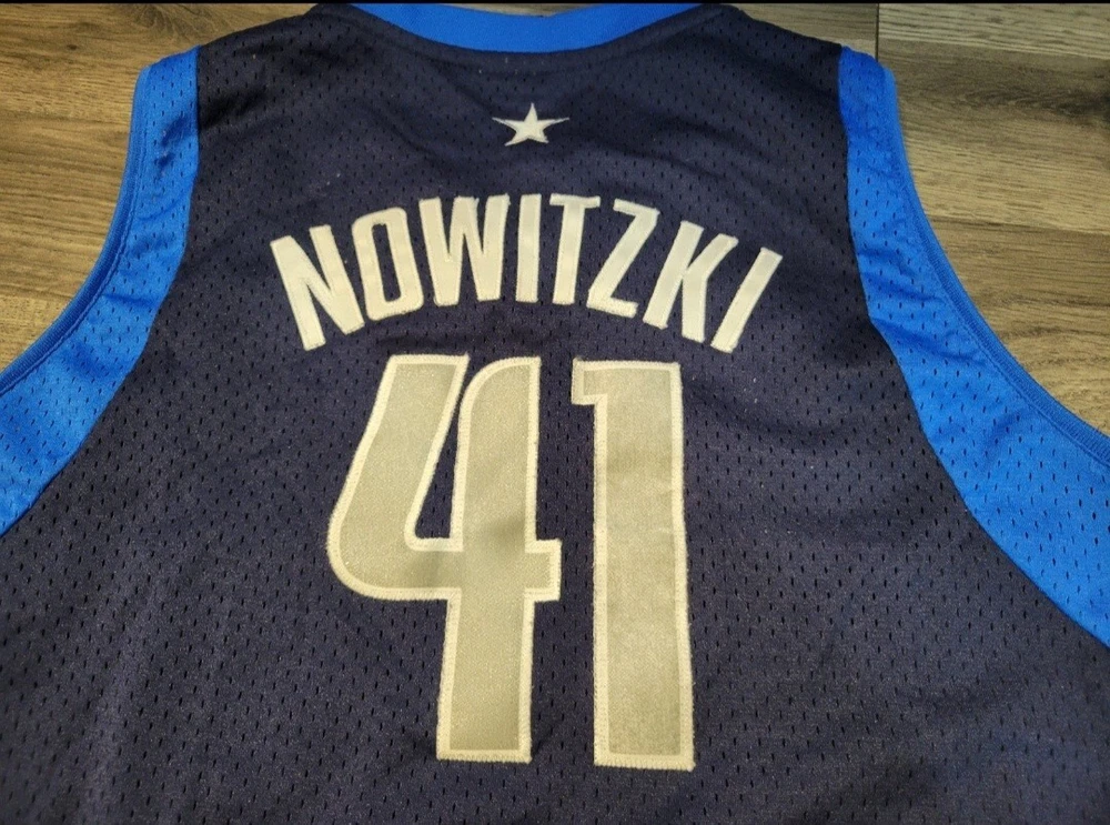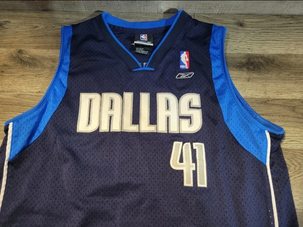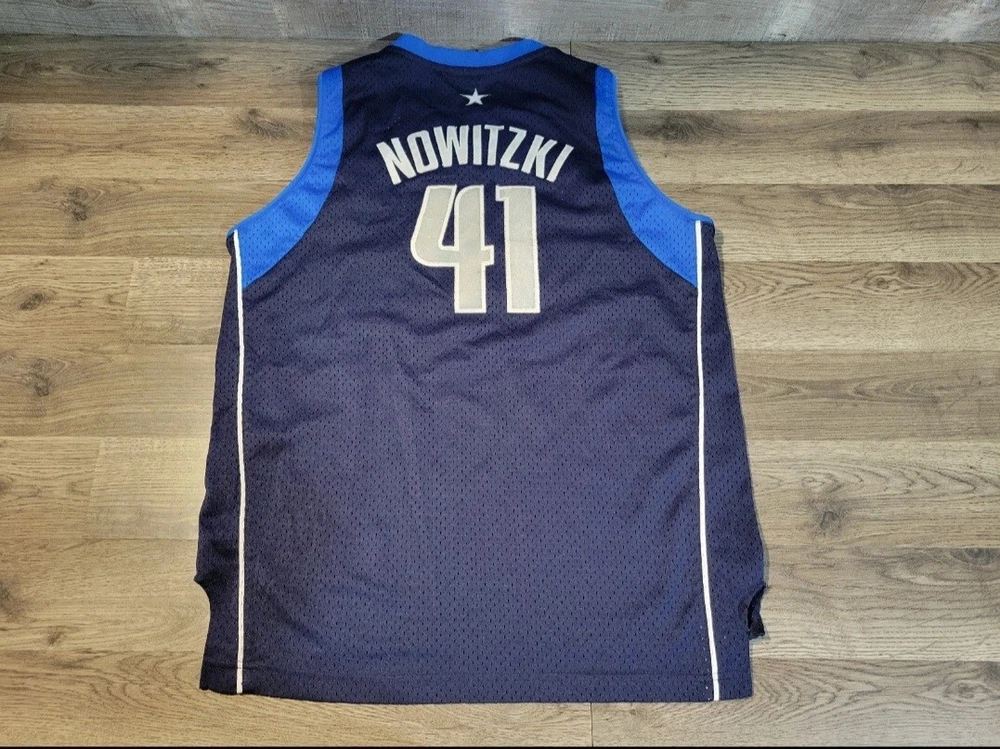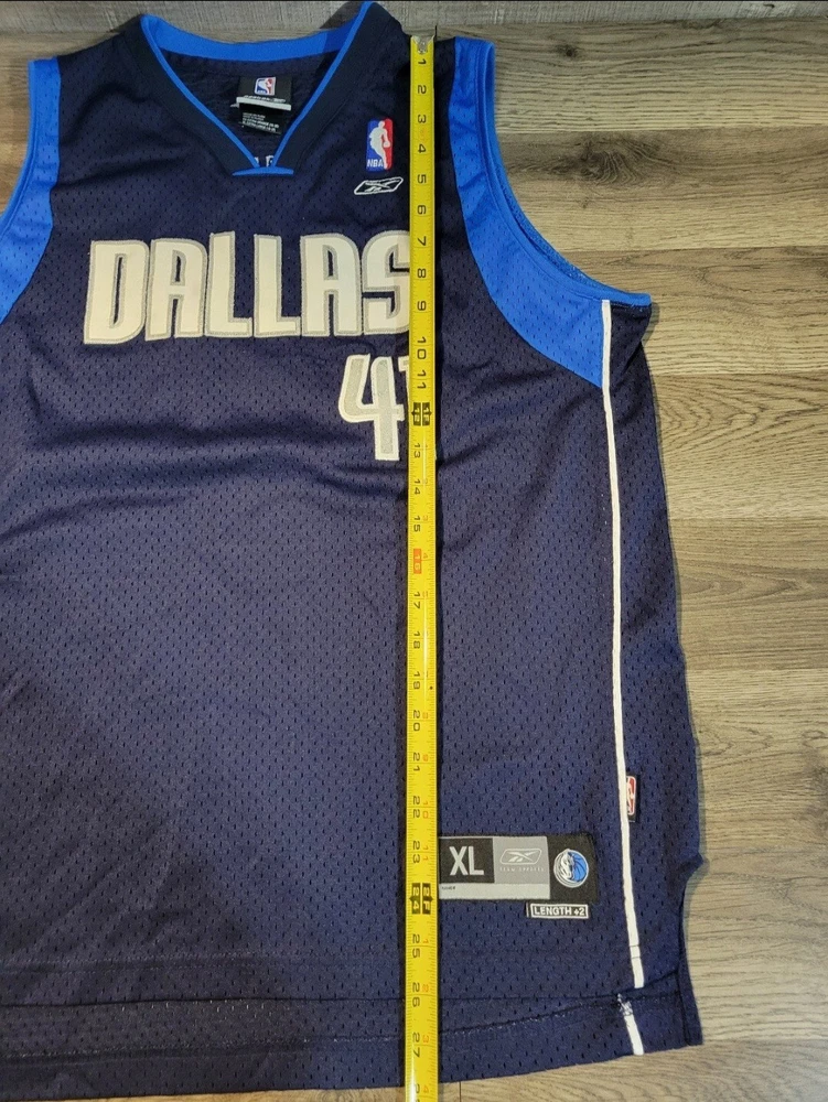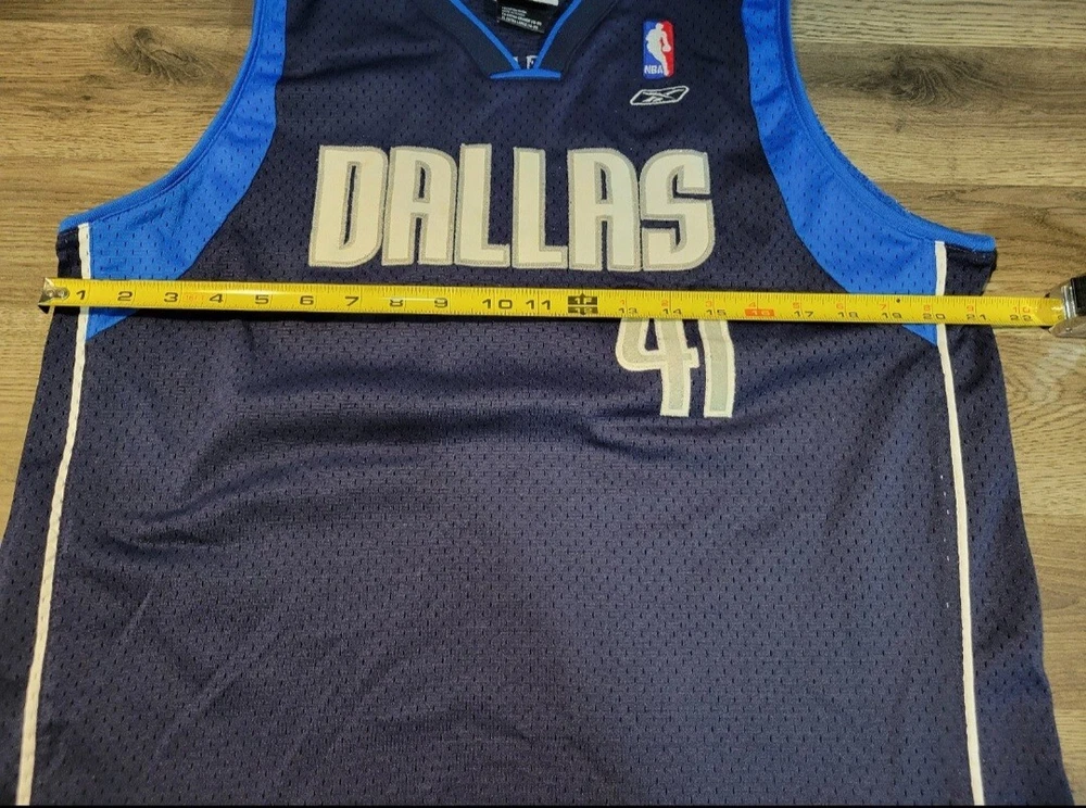 Reebok Dallas Mavericks Dirk Nowitzki 41 Youth Jersey. Stitched numbers and lettering. Size XL (18-20), measures approx 21" chest x 26" length (+2).