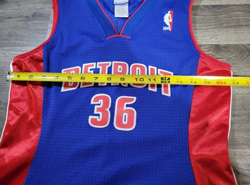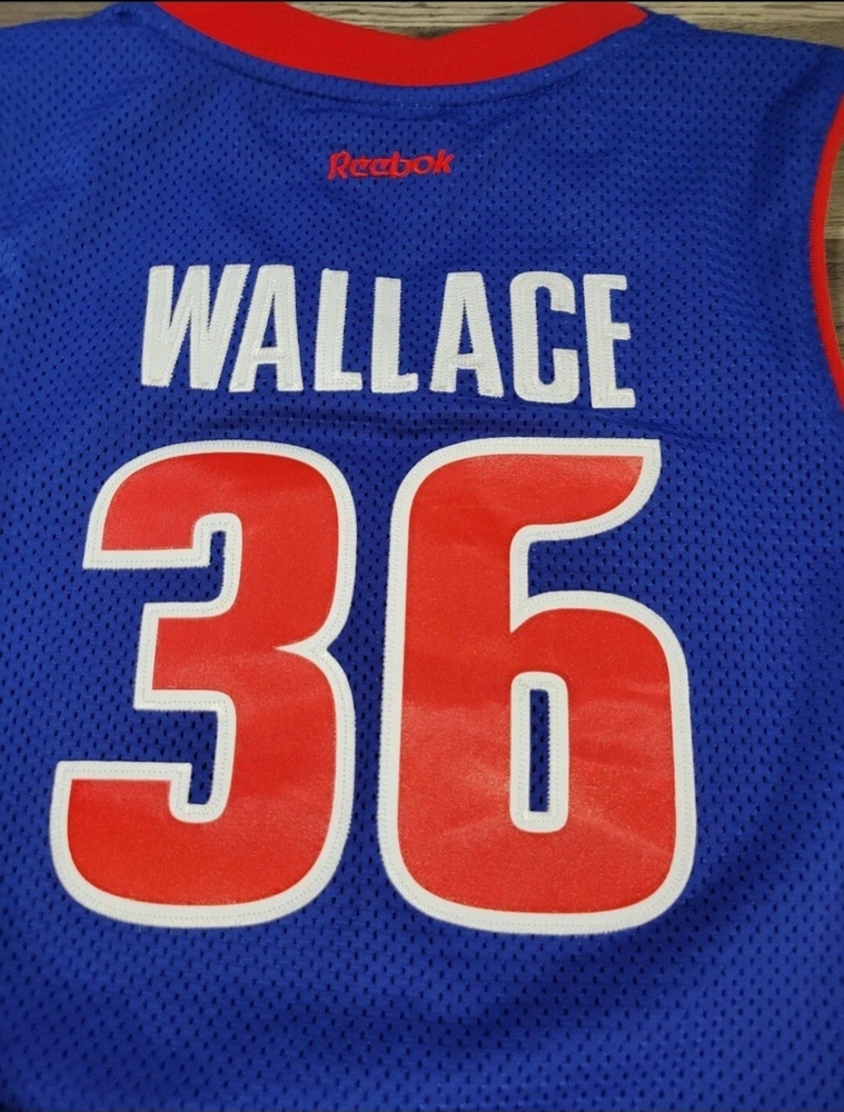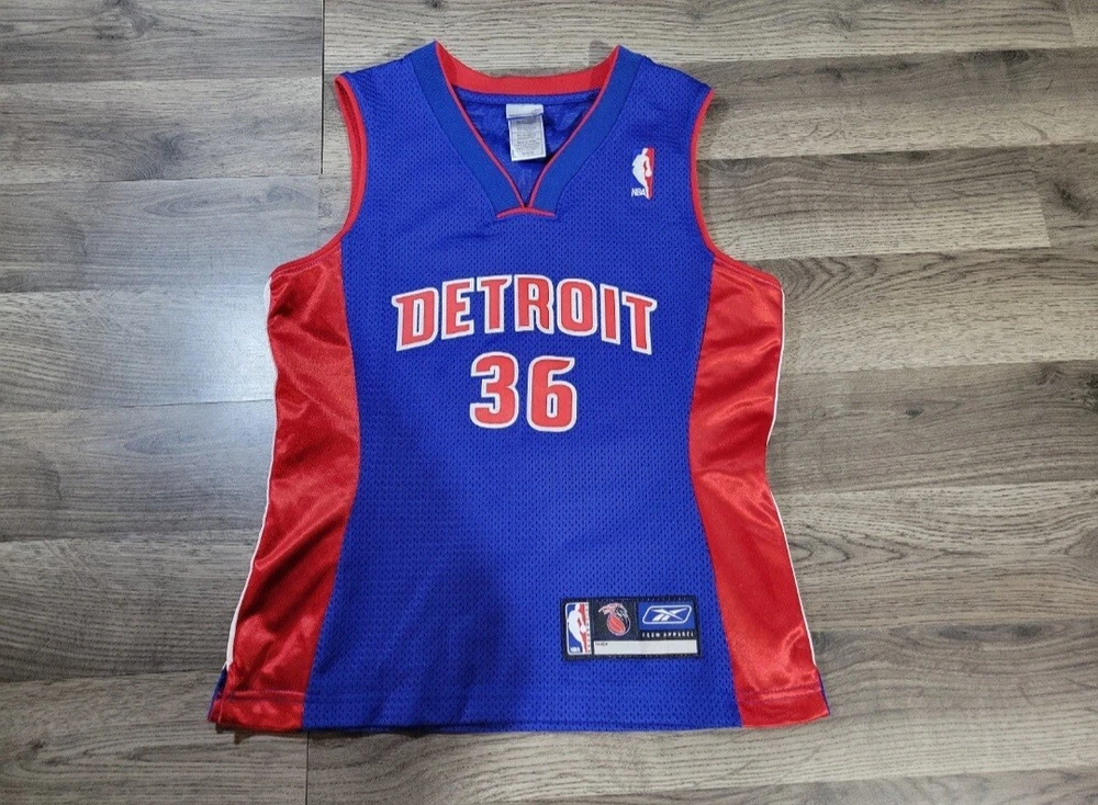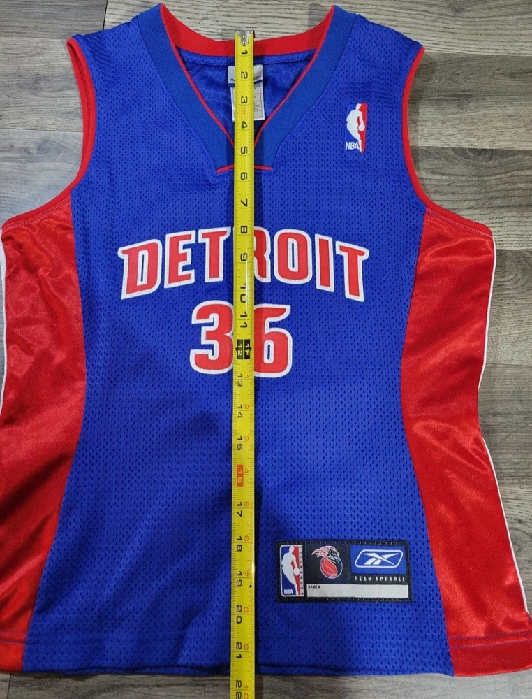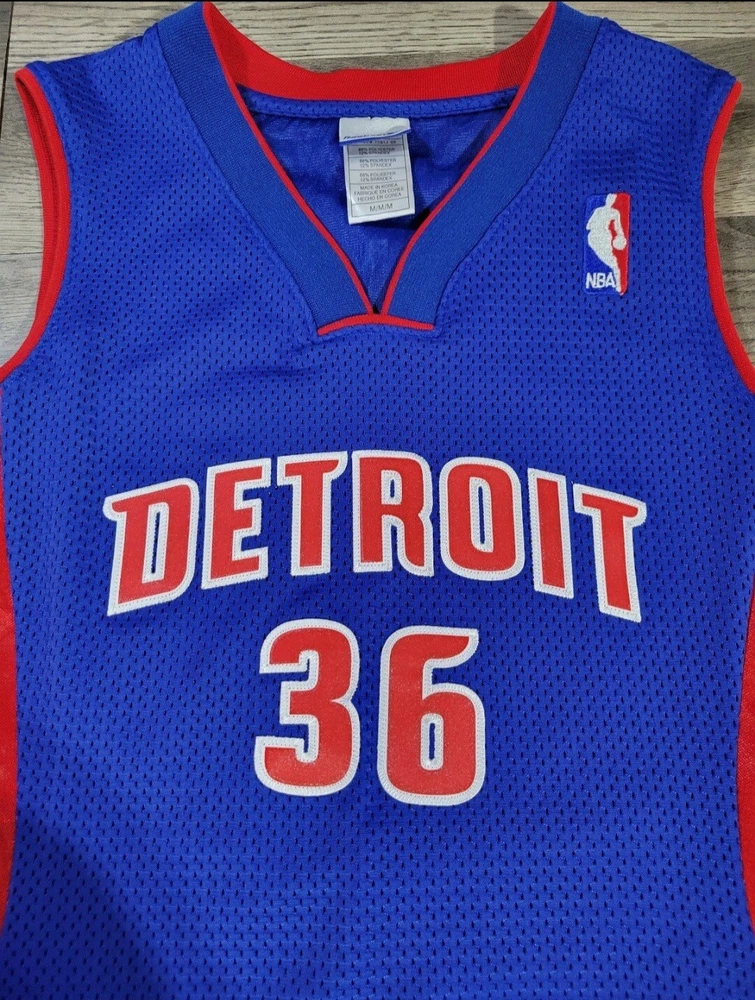 Youth Reebok Detroit Pistons Rasheed Wallace Jersey. Embroidered logos and stitched patches. In great condition. Size Medium, measures approx 17" chest x 21 1/2" length.