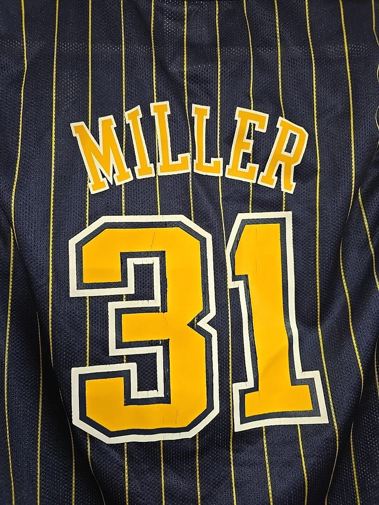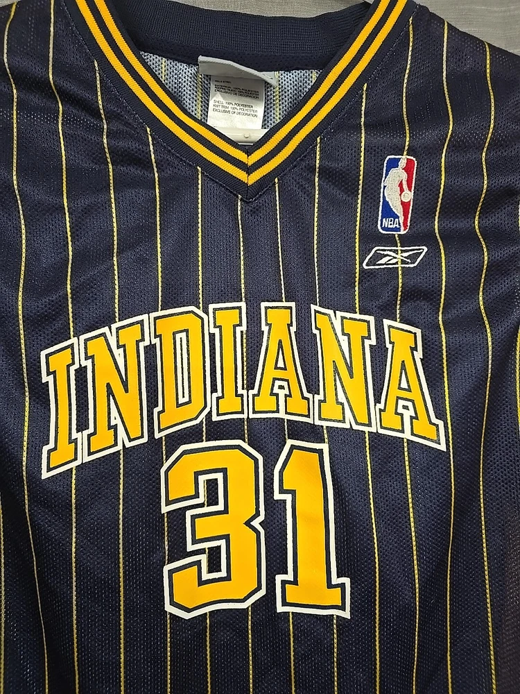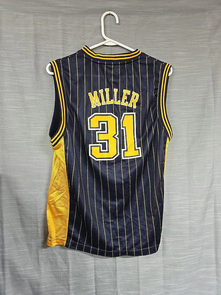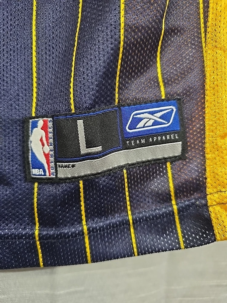 Step up your game with the Reebok Indiana Pacers Reggie Miller Jersey, perfect for any young fan looking to show their support for the NBA legends. This vibrant blue jersey, emblazoned with Miller's iconic #31 and the classic striped design, is a must-have for any basketball enthusiast. Sized large, it's suitable for unisex children, allowing them to wear their favorite player's jersey to games or while playing with friends. Officially licensed by the NBA, this jersey signifies the quality and authenticity that Reebok brings to its sports apparel. Whether it's for regular season games or collecting memorabilia, this piece captures the spirit of the Indiana Pacers and the nostalgia of the Y2K era. Add it to the collection of sports memorabilia or gift it to a fellow fan who cherishes the rich history of basketball.
