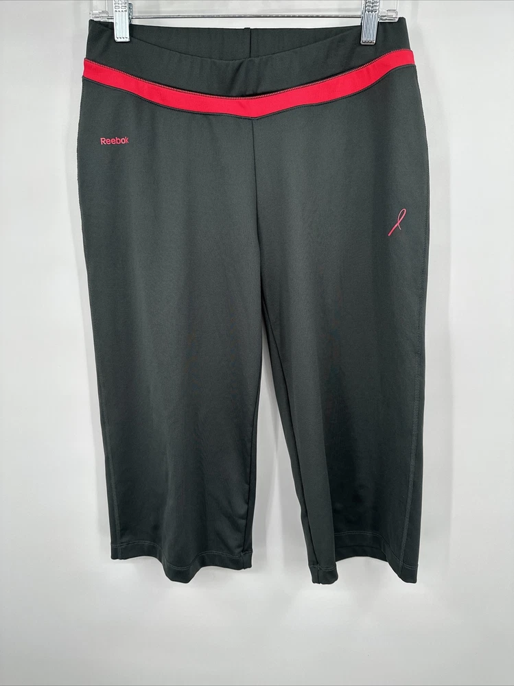 Reebok Large 3/4 Tights - gray , Tights, Workout pink trim see measurements.