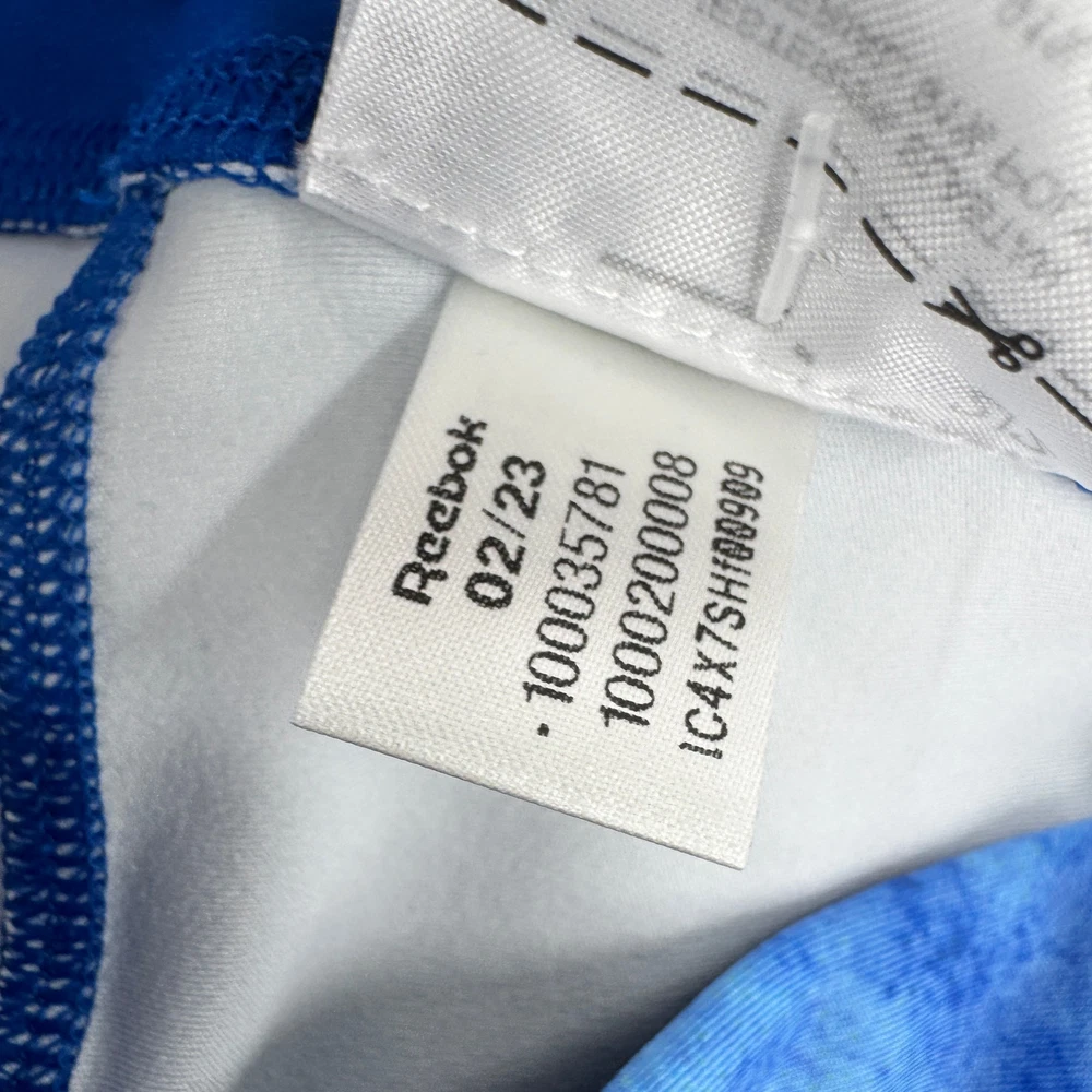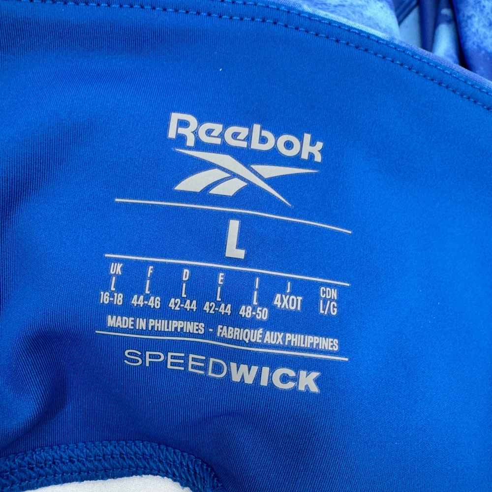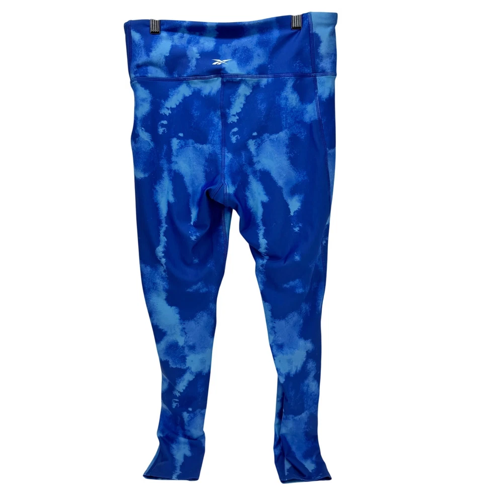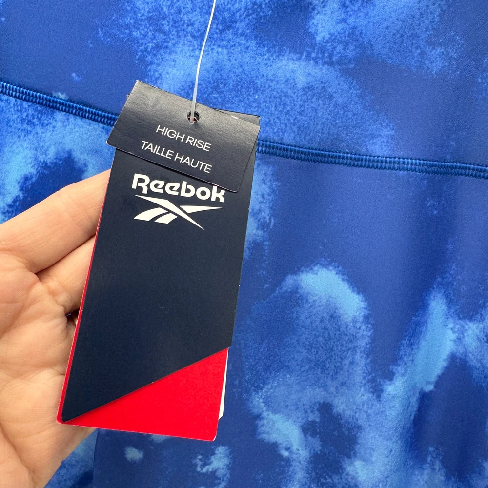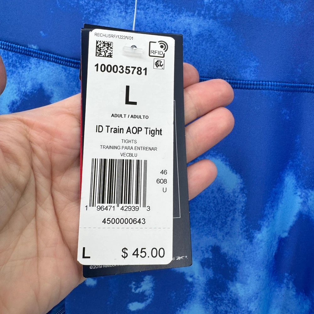 Reebok Leggings Womens Large Blue AOP ID Train High Rise Full Length NEW Brand new with tags, see all pictures for views. •Waist: 29" Not stretched •Inseam: 28" •Rise: 11" Ships out same day or next open postal day. Thank you for your purchase, we appreciate you!