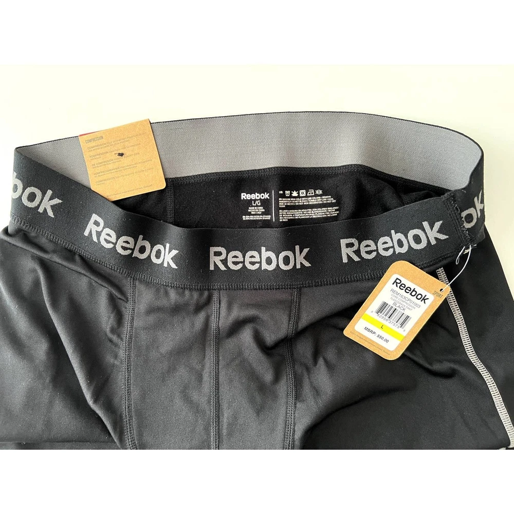 Reebok Men's Large Black Fleece Lined Compression Underwear Pants New With Tags