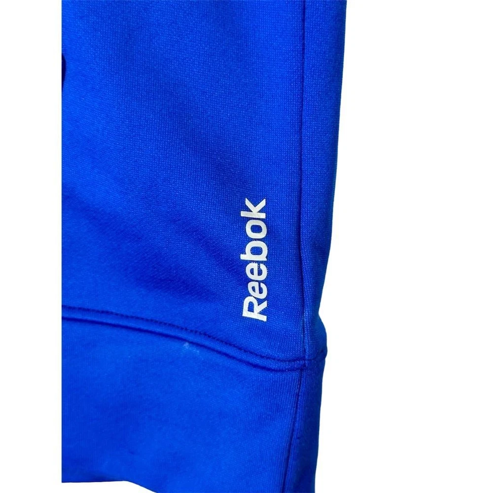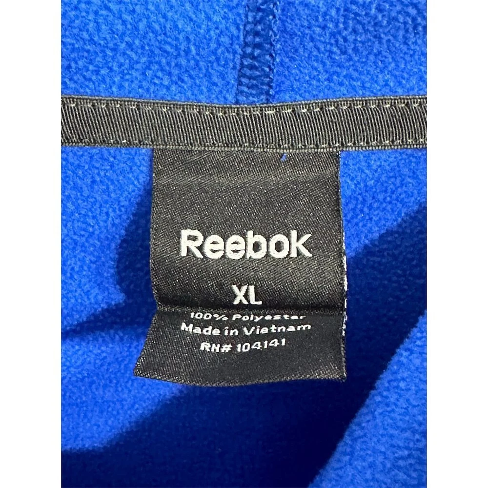 Reebok Men's Pullover Hoodie in blue, size XL. Made from 100% polyester with a comfortable fit. Features a front kangaroo pocket and Reebok logo. Manufactured in Vietnam. Pre-owned condition. Keywords: Reebok, men's hoodie, pullover, blue hoodie, XL hoodie, comfortable fit, kangaroo pocket, Reebok logo, polyester hoodie, men's fashion, casual wear, athletic wear, pre-owned hoodie, men's clothing, Vietnam-made Brand: Reebok Type: Hoodie Size: XL Color: Blue Department: Men Style: Pullover Features: Front kangaroo pocket, Comfortable fit, Reebok logo Country/region of manufacture: Vietnam Material: 100% Polyester