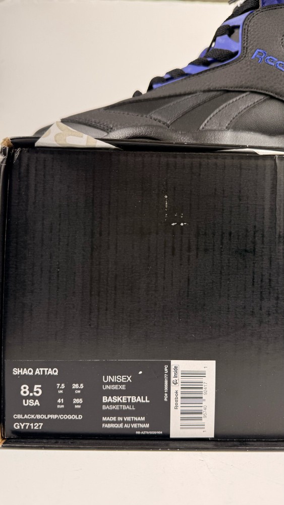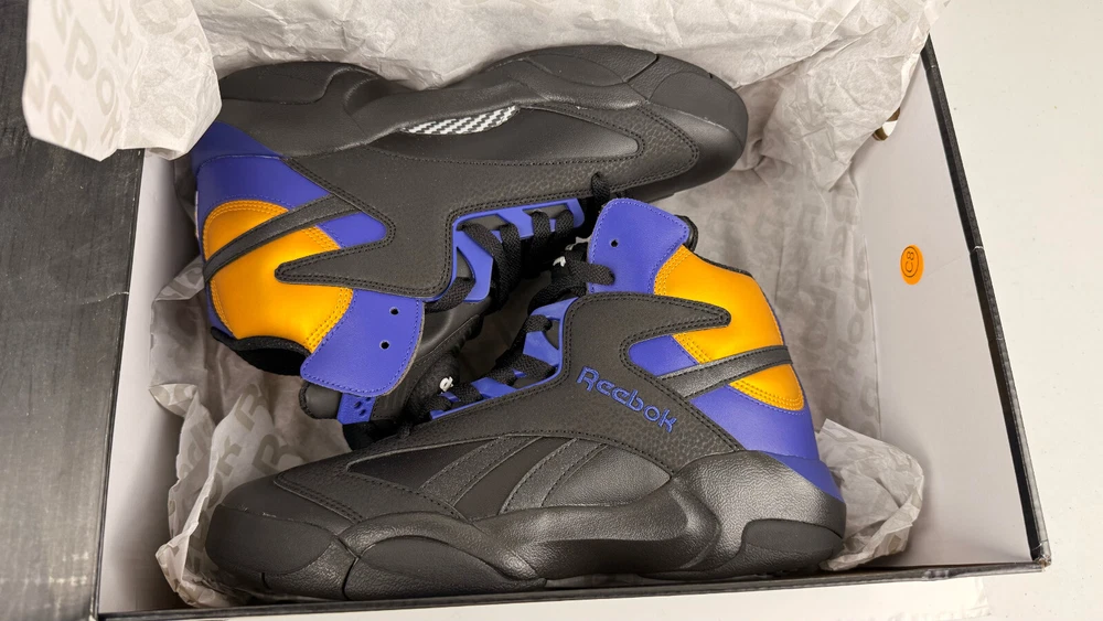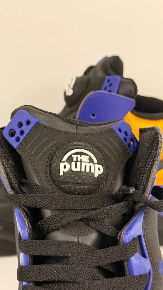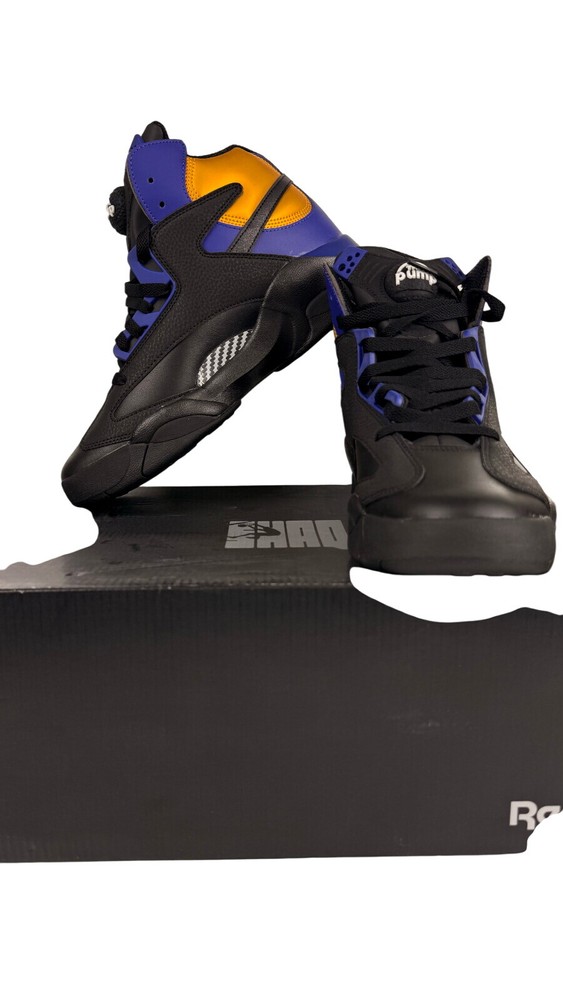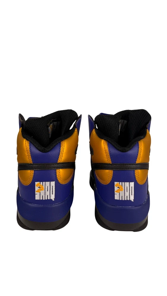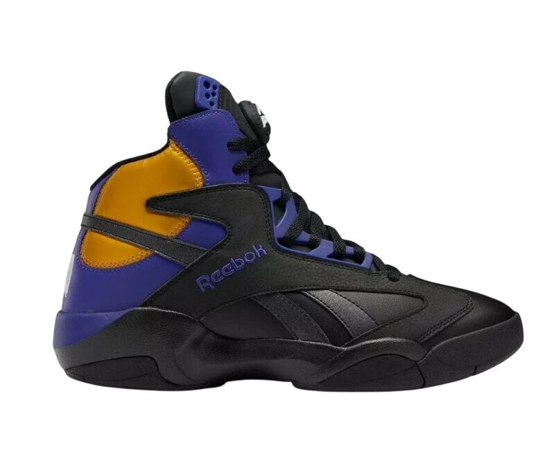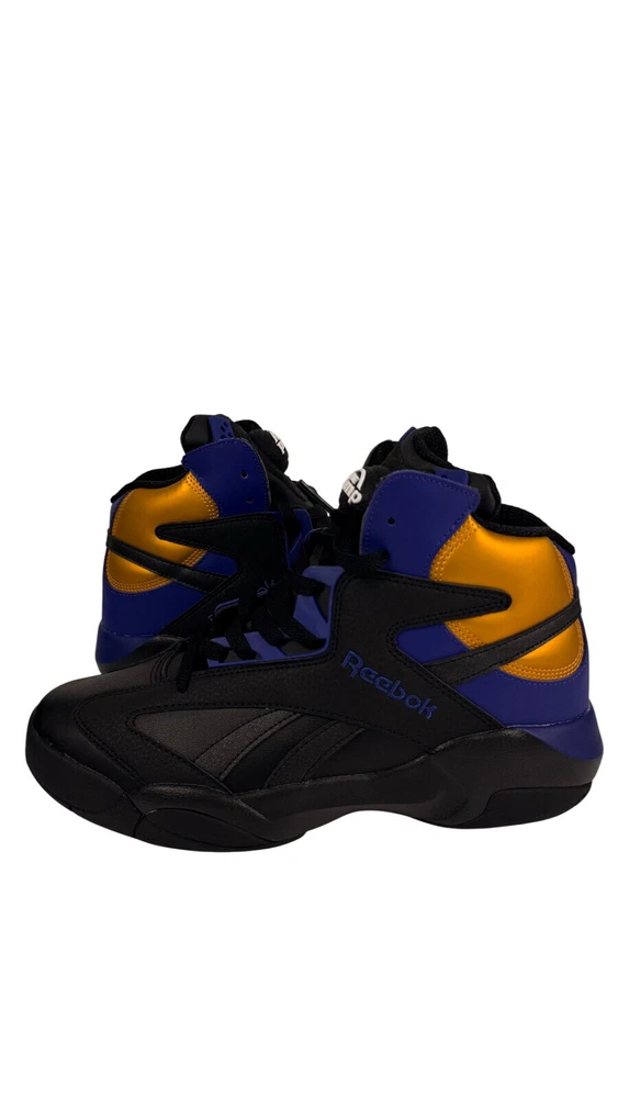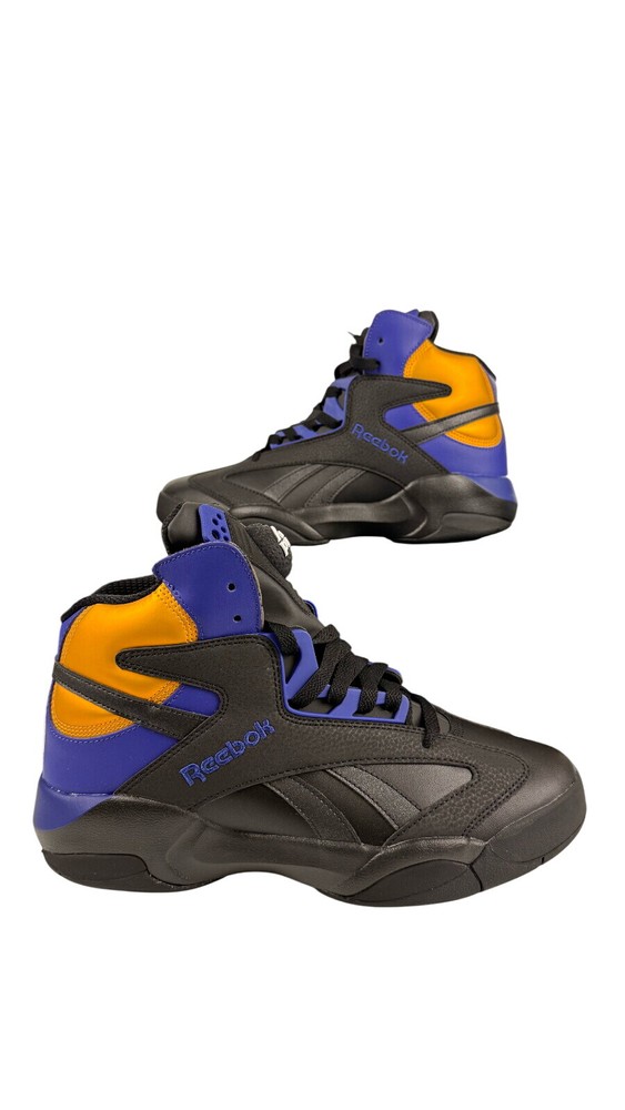 Step up your game with the Reebok Men's Shaq Attaq "Los Angeles Lakers" Basketball Sneakers. A blend of classic style and modern comfort, these sneakers feature a sleek black, purple, and gold color scheme that pays homage to the iconic Lakers hues. The durable leather upper and foam insole offer support and cushioning, while the rubber outsole provides traction on a variety of surfaces. Designed for the basketball enthusiast, these size 8.5 sneakers (UK 7.5, EU 41) are versatile enough to wear for a range of occasions, from activewear to casual workdays. The Pump technology ensures a secure fit, and the timeless design makes them a great addition to any footwear collection. Whether you're on the court or cruising the city, the Reebok Shaq Attaq sneakers are engineered for both performance and style.