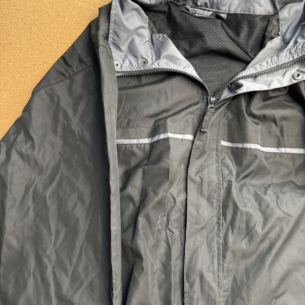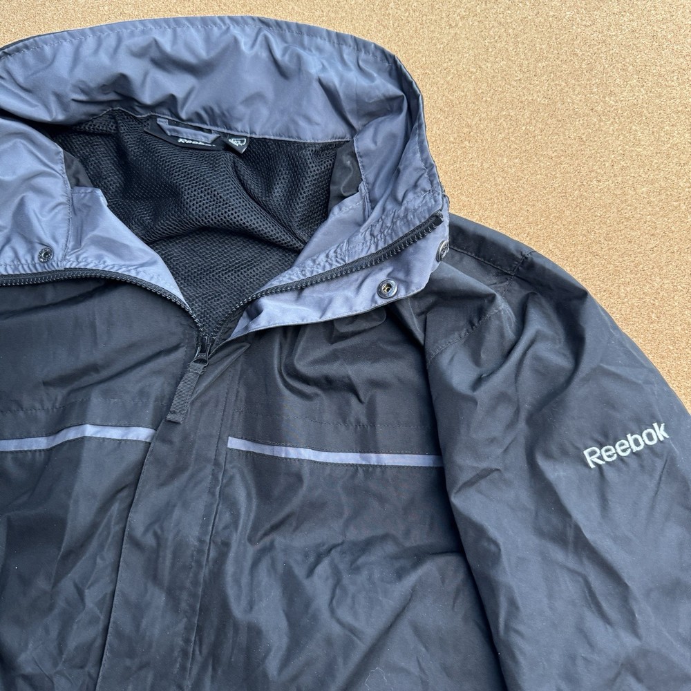 The Reebok Men's XL Windbreaker Jacket in Black/Gray is a stylish and practical outerwear option for men. Made from lightweight polyester material, this jacket features a hood and full zip closure for added versatility and functionality. The windbreaker style adds a sporty touch to the design, making it suitable for various occasions. With its XL size and classic color combination, this Reebok jacket is a great choice for those looking for a lightweight and comfortable coat to stay warm and stylish on the go.