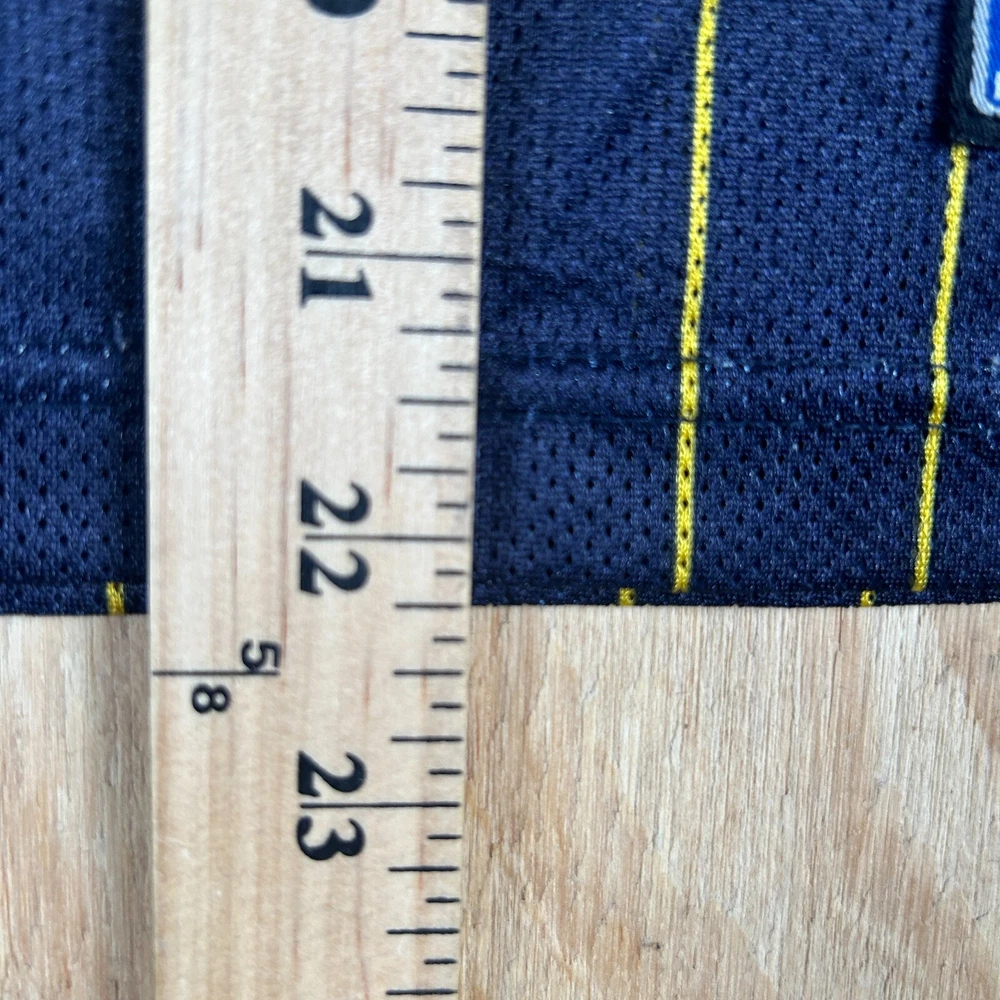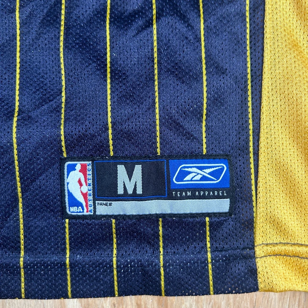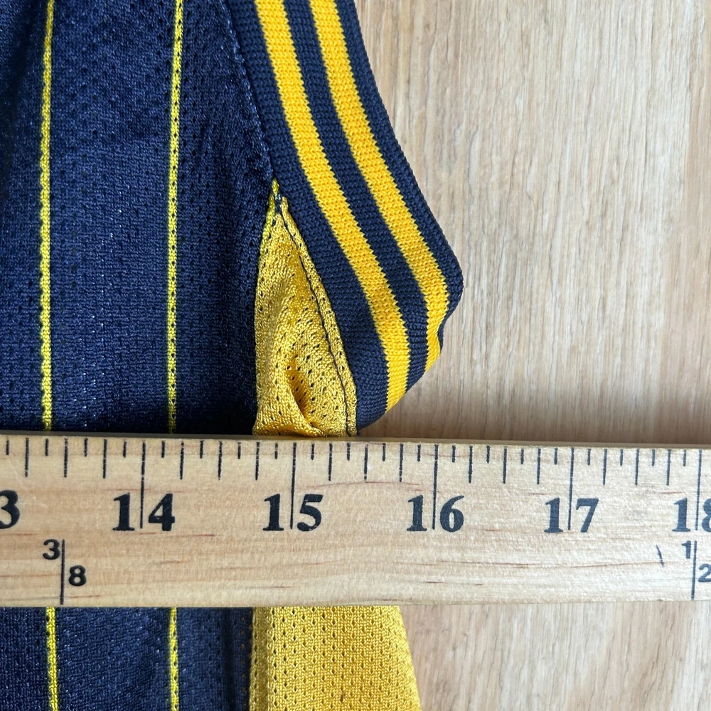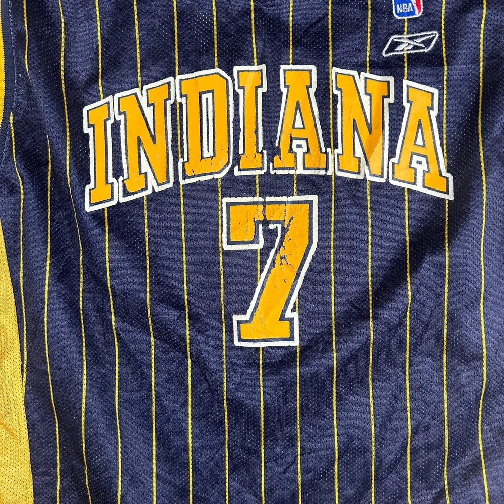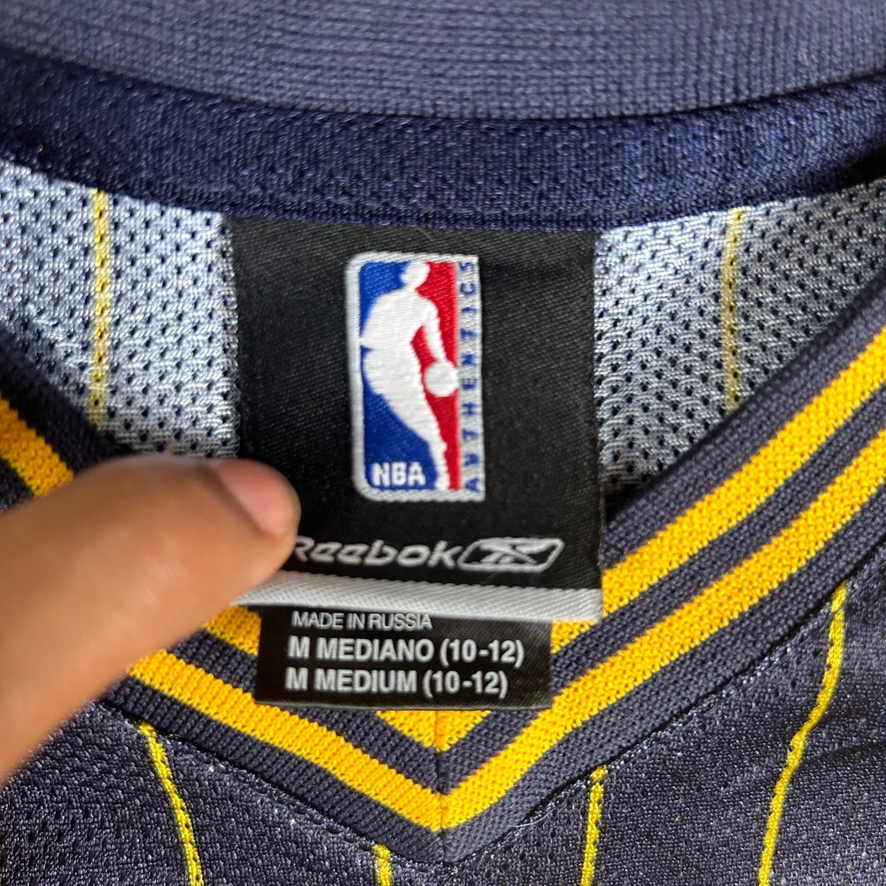 Show your support for the Indiana Pacers with this Reebok NBA basketball jersey. The youth medium size (10-12) jersey features the team's colors of black and yellow, as well as the player's number 7. It is officially licensed by the National Basketball Association (NBA) and is perfect for wearing to games during the regular season. The jersey is made in the Russian Federation and is designed for youth players. Get ready to hit the court or cheer on your favorite team from the stands with this Indiana Pacers jersey.