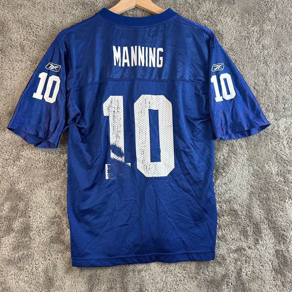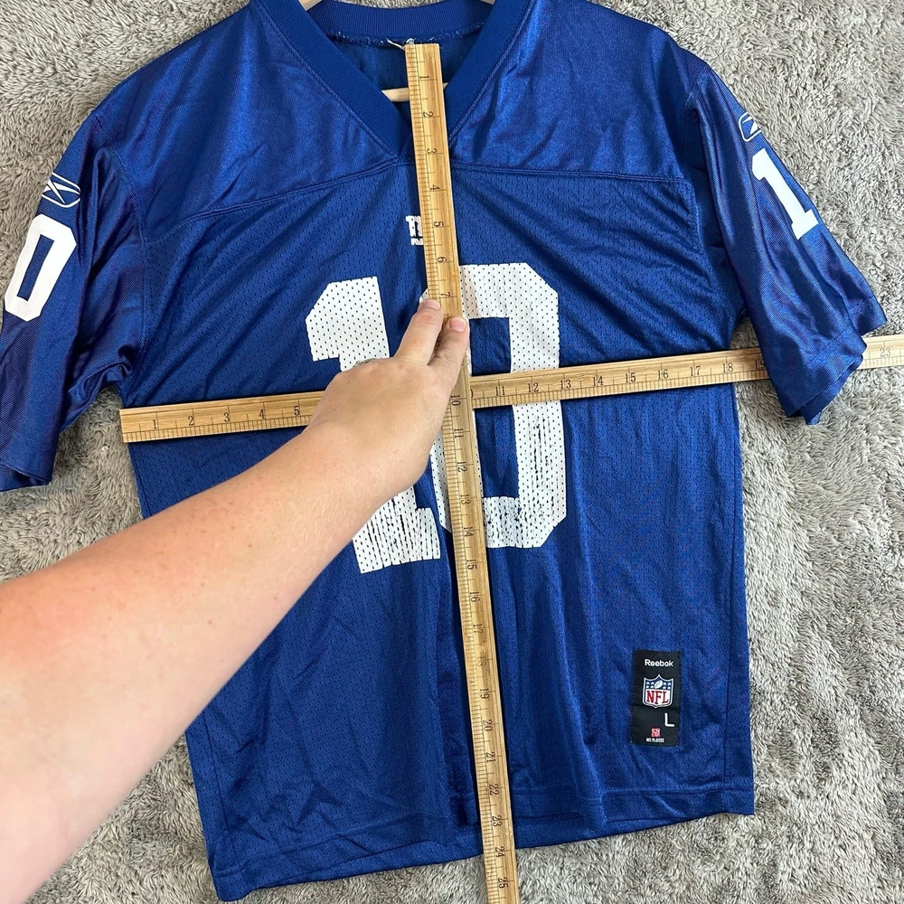 Reebok NFL NY Giants Eli Manning 10 Mesh Football Jersey Shirt Boys Youth L Large Youth size large, approximate measurements in photos. Wear to white letters/numbers but otherwise great shape. See photos.