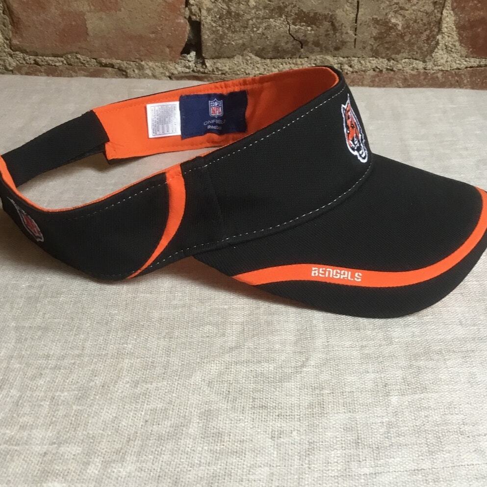 Show off your Bengals pride with this Reebok Onfield visor. Perfect for game day or everyday wear, this unisex adult hat features the iconic Bengals logo. The one-size-fits-all design ensures a perfect fit for all fans. Adjustable strap back. This officially licensed NFL football apparel is perfect for any fan looking to add to their collection. Pre-owned in excellent, clean condition!