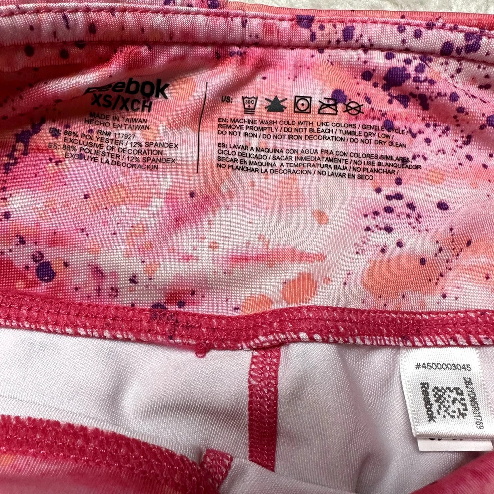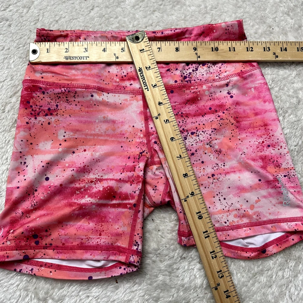 Reebok Pink Ombre Paint Splatter Bike Workout Shorts Women's Size XS Extra Small EUC, no flaws or signs of wear. Size XS. Measurements in photos.