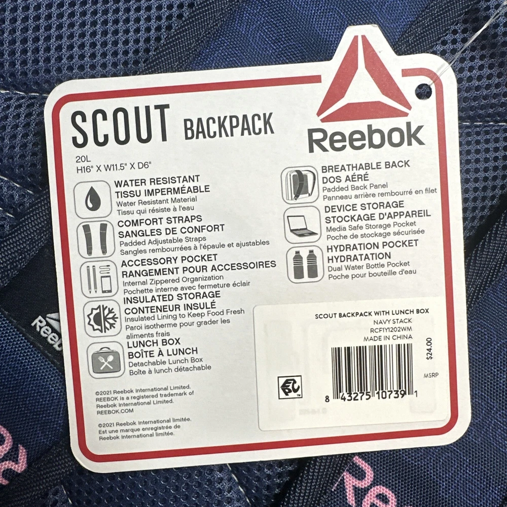 Reebok Scout Backpack with Detachable Insulated Lunch Box in Navy NWT