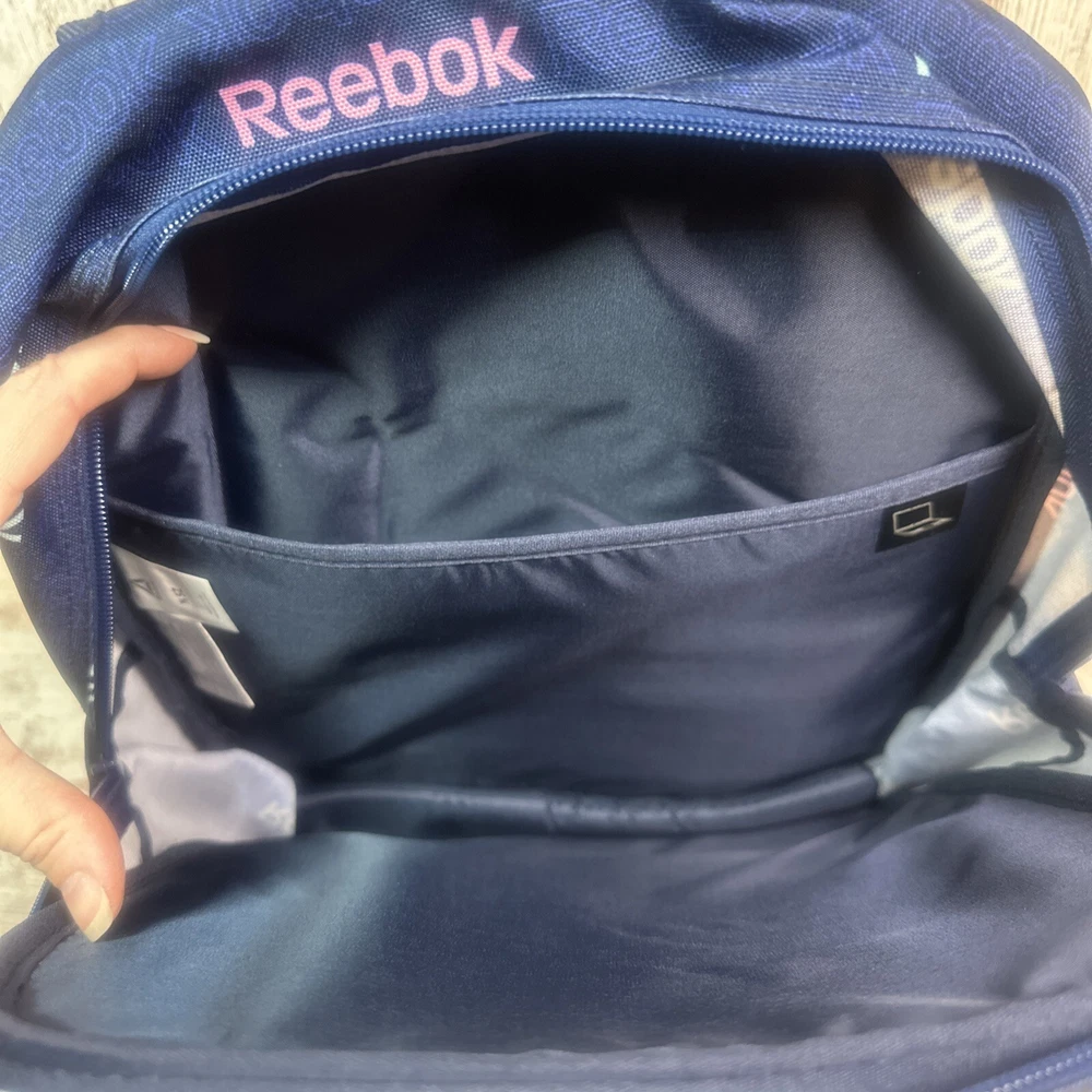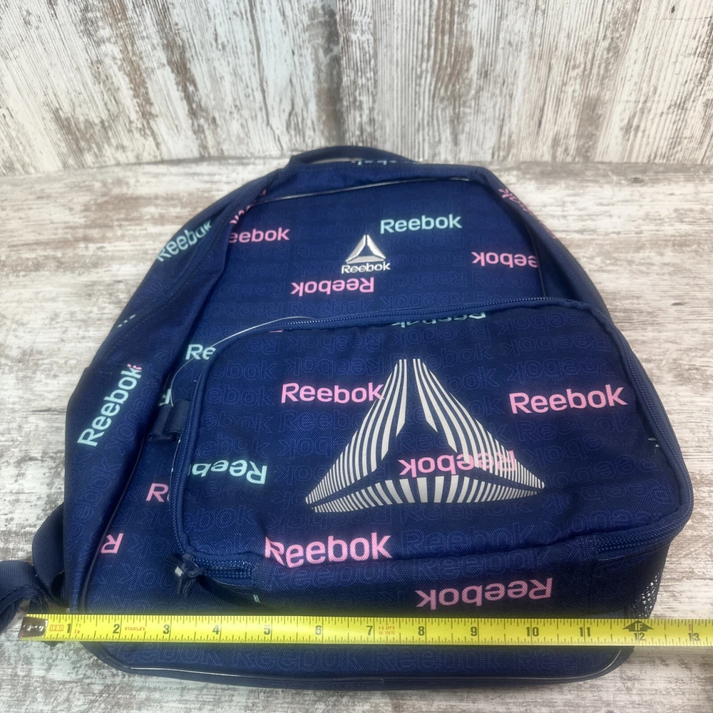 Bag Width: 11.5 in Bag Height: 16 in Style: Backpack Size: Large Material: Polyester Theme: Sports Size Type: Regular Color: Blue Bag Depth: 6 in Features: Adjustable Strap, Bottle Pocket Closure: Zip Vintage: No Department: Unisex Adults Brand: Reebok