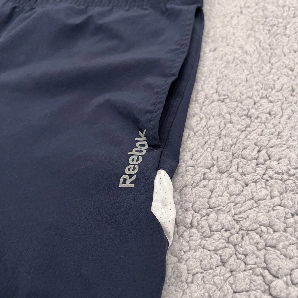 Handmade: No Color: Blue Fit: Regular Performance/Activity: Beach, CrossFit, Cross Training, Cycling, Running & Jogging, Track & Field Style: Athletic Department: Women Personalize: No Theme: Bike, Nature, Outdoor, Sports Season: Fall, Spring, Summer, Winter Garment Care: Machine Washable Seller Notes: “In Good Used Condition” Material: Polyester Brand: Reebok Size: S Closure: Drawstring Country/Region of Manufacture: Cambodia Features: Comfort, Easy Care, Elastic Waist, Quick Dry Pattern: Solid Occasion: Activewear, Casual Size Type: Regular