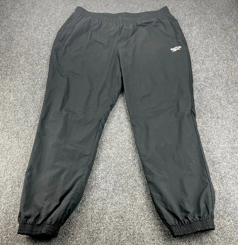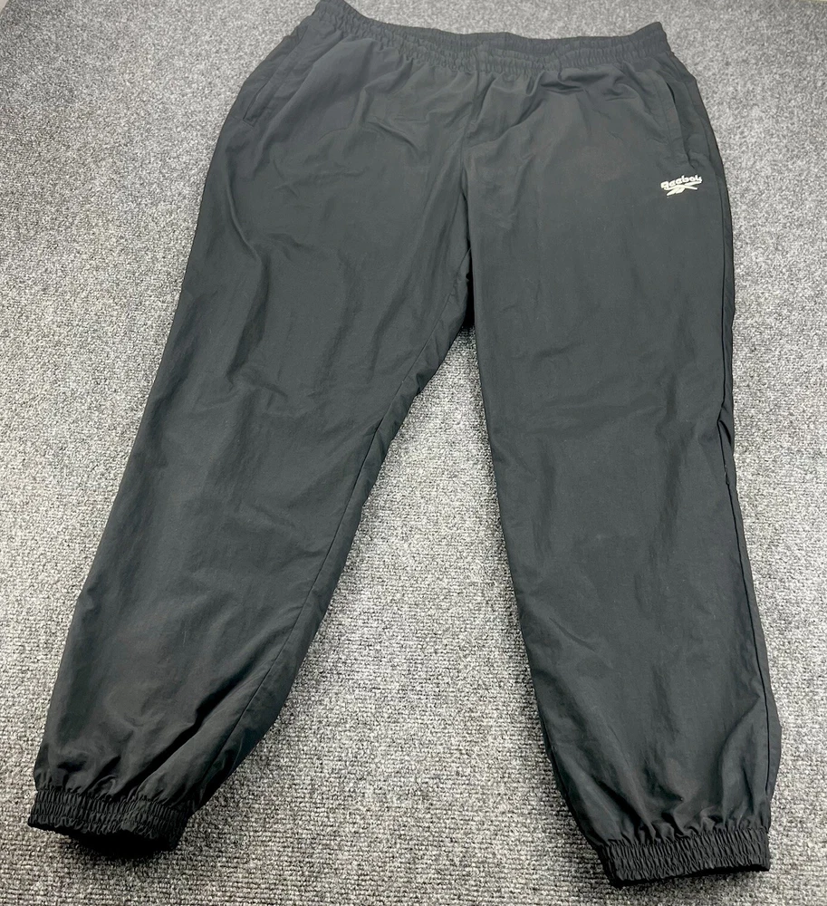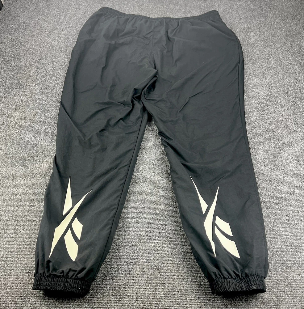 Reebok Track Pants Men’s Size 2XL Black Lined Nylon Windbreaker Big Logo