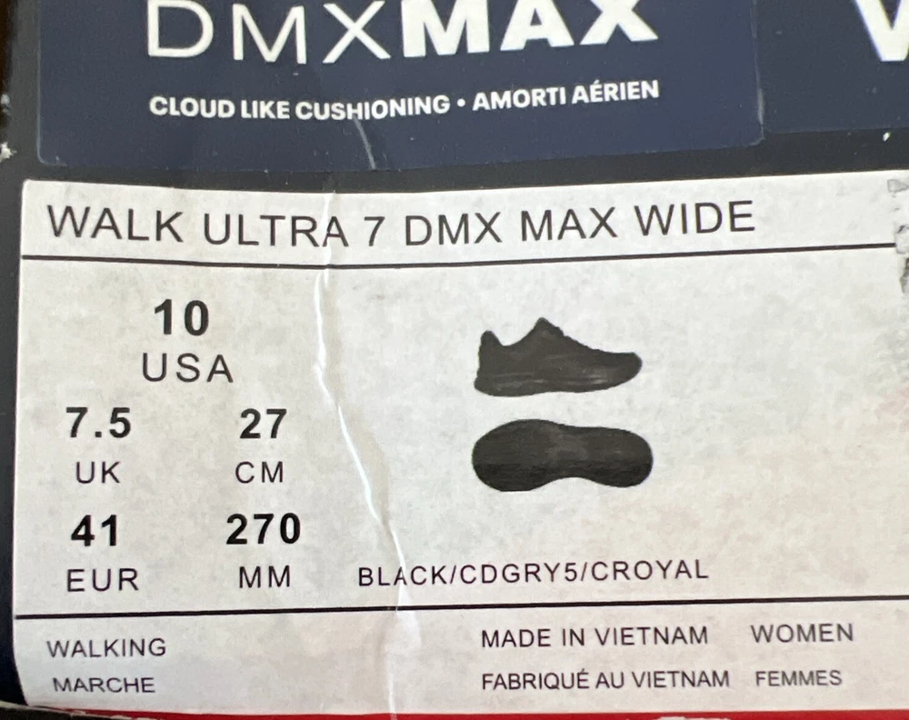 Reebok Walk Ultra DMX Max WIDE Womens Sz 10 Walking Shoe Athletic Sneakers Black