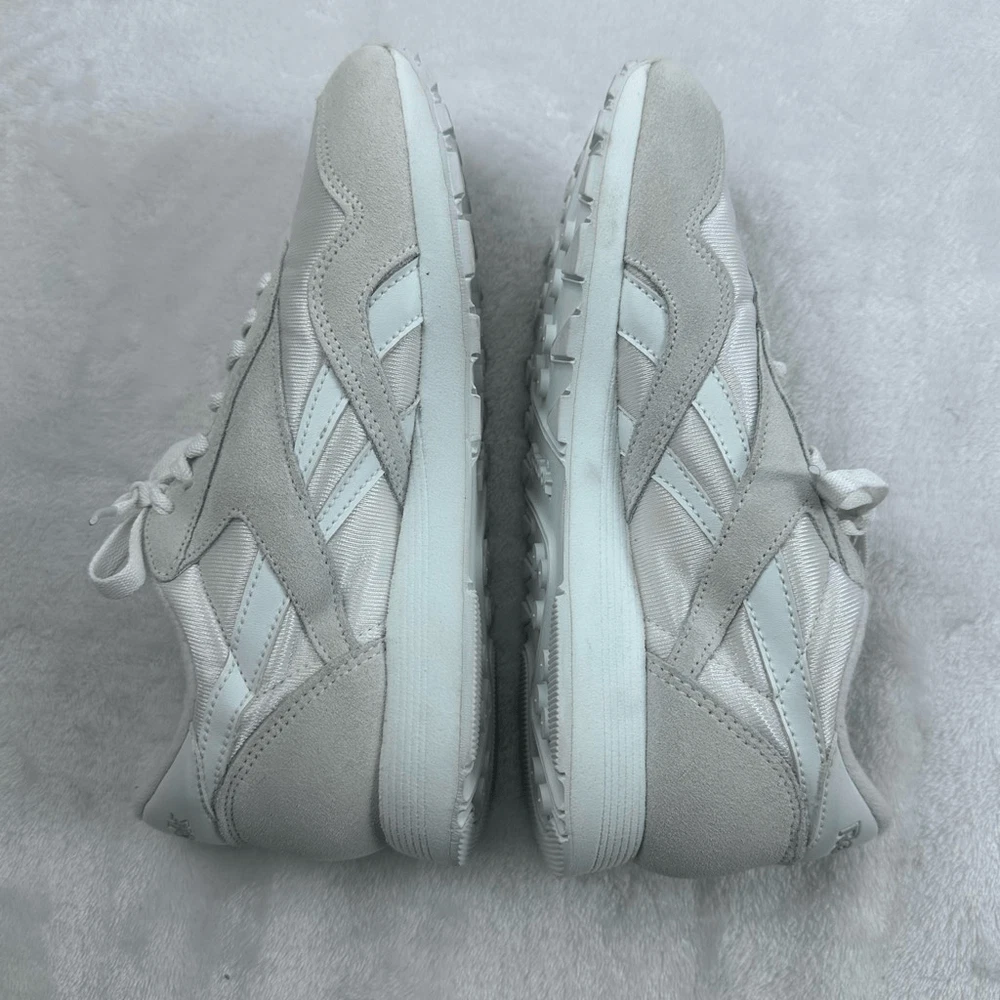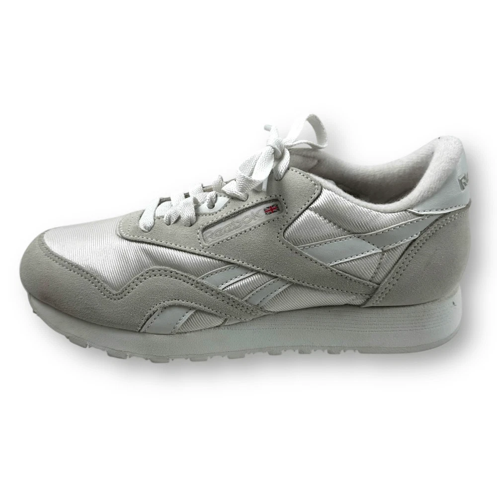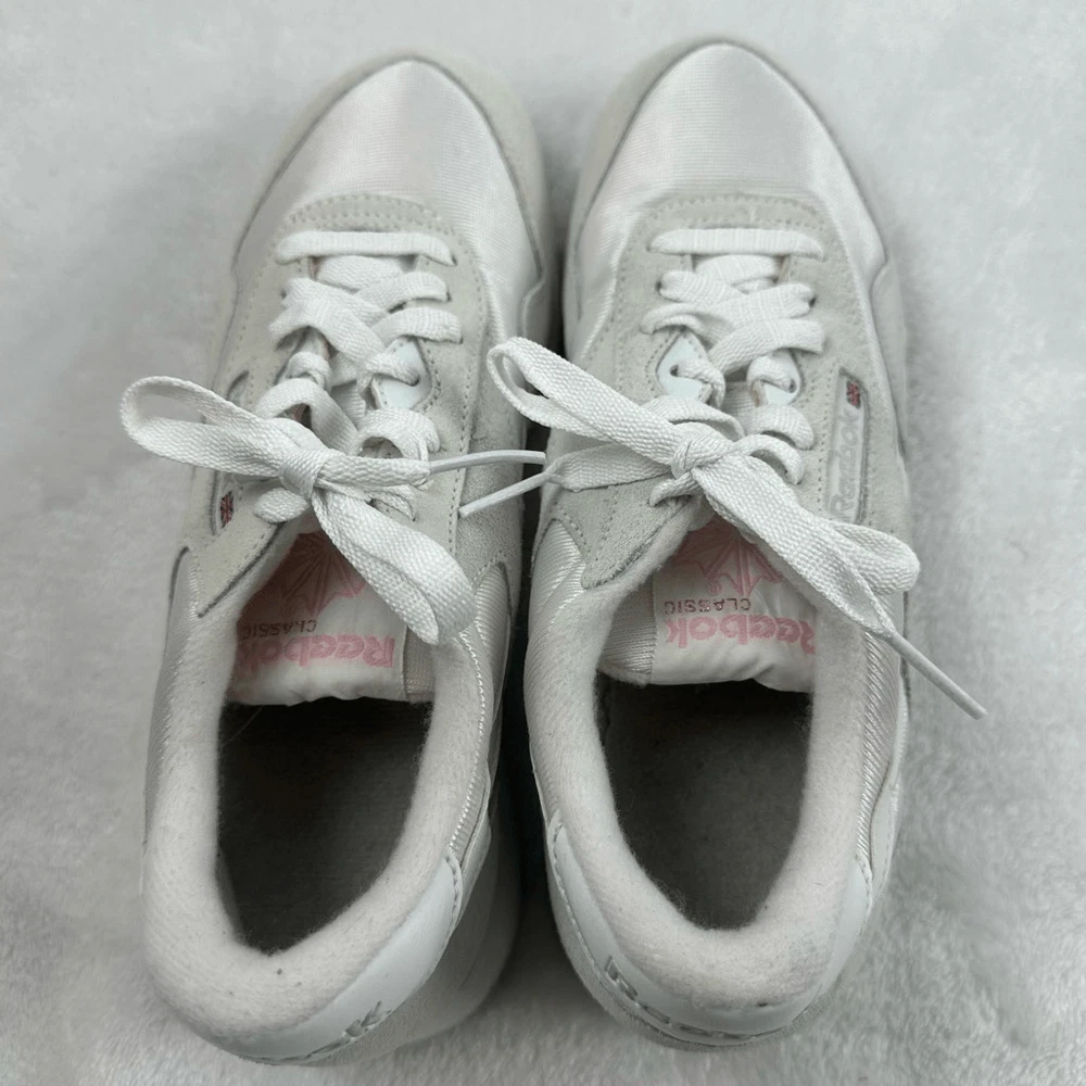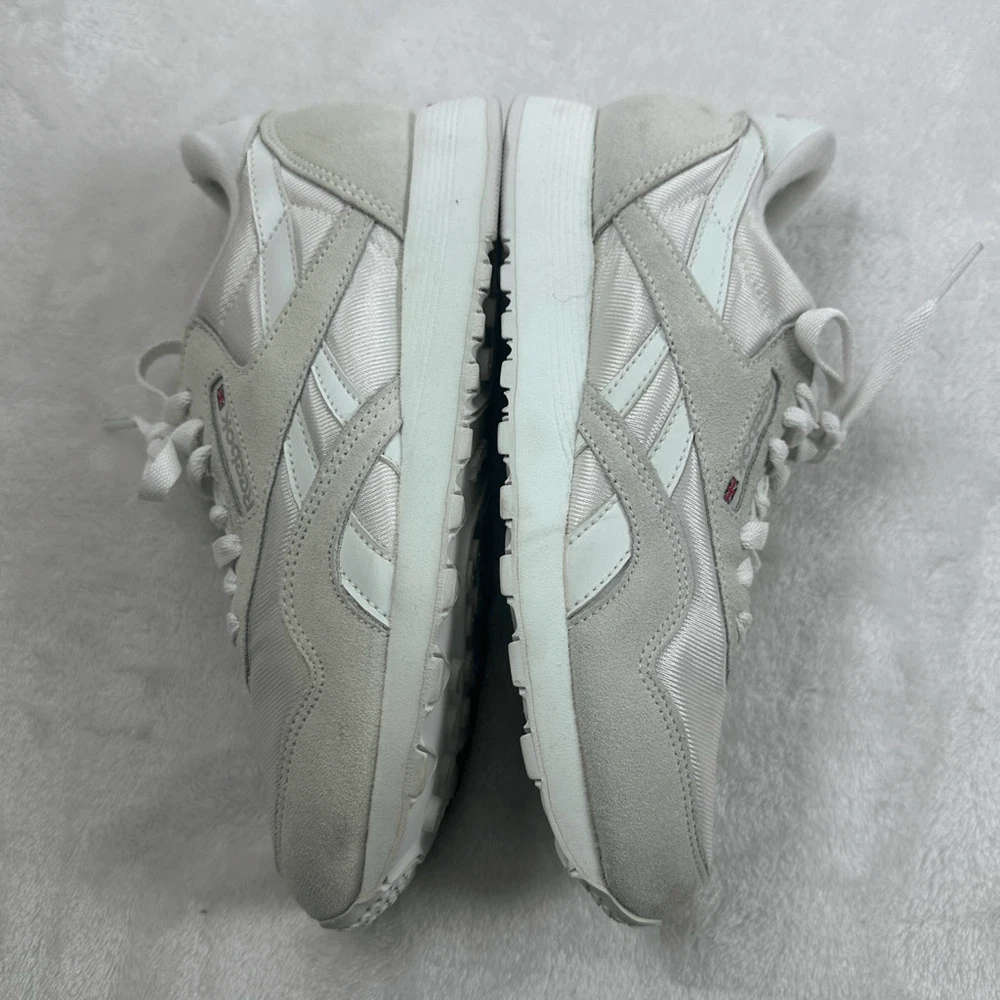 Reebok Women's 6.5 Classic Nylon Sneakers Beige White Retro Sporty Tennis Prep Size 6.5 Preowned/gently used Ships fast! Ships from a smoke free home