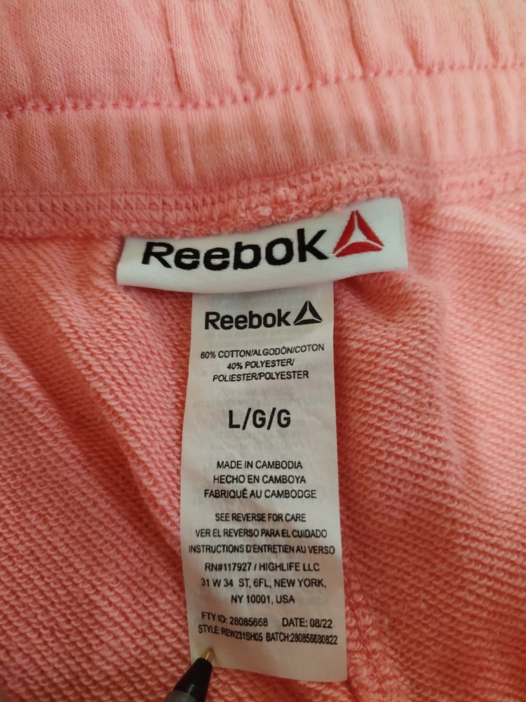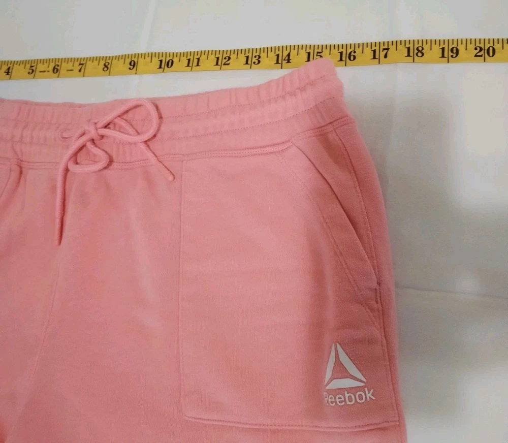 The Reebok Women's Pink Athletic Shorts are designed for active women looking for both style and performance. Made from a blend of polyester and cotton, these shorts feature a drawstring elastic waist for a comfortable fit. The solid pink color adds a pop of color to your activewear collection, while the pockets provide convenient storage for your essentials during workouts. Perfect for gym and training activities, these athletic shorts by Reebok offer a regular fit in size L, making them a versatile addition to your wardrobe for all your active occasions.