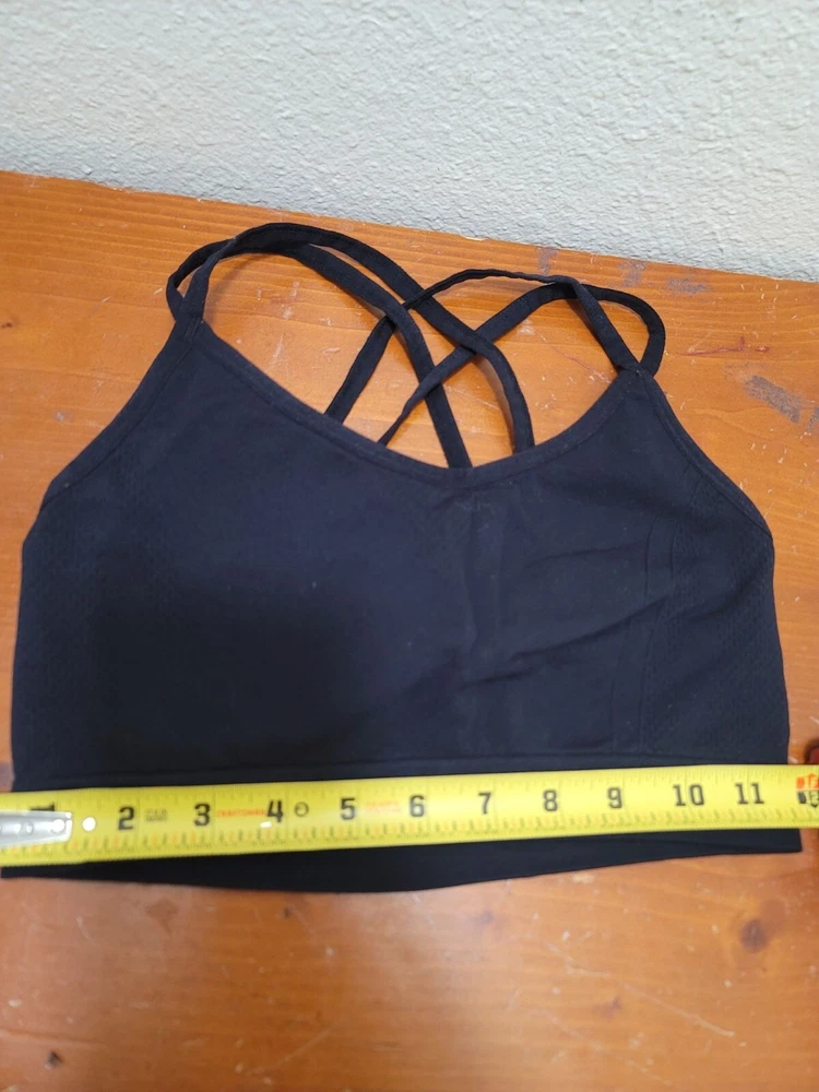 Material: Nylon, Spandex, Nylon, Spandex Support Level: Medium Personalize: No Band Size: S Strap Type: Crossback Pattern: Solid Fabric Type: Blended Fabric Occasion: Activewear Garment Care: Machine Washable Seller Notes: “pre owned, no visible flaws, good condition.see photos for more details” Department: Women Product Line: Reebok CrossFit Closure: Pullover Brand: Reebok Size: S Accents: Strap Theme: Sports Features: Stretch Country/Region of Manufacture: China Size Type: Petites Underwire Type: Wireless Color: Black Type: Bra Style: Sports Bra