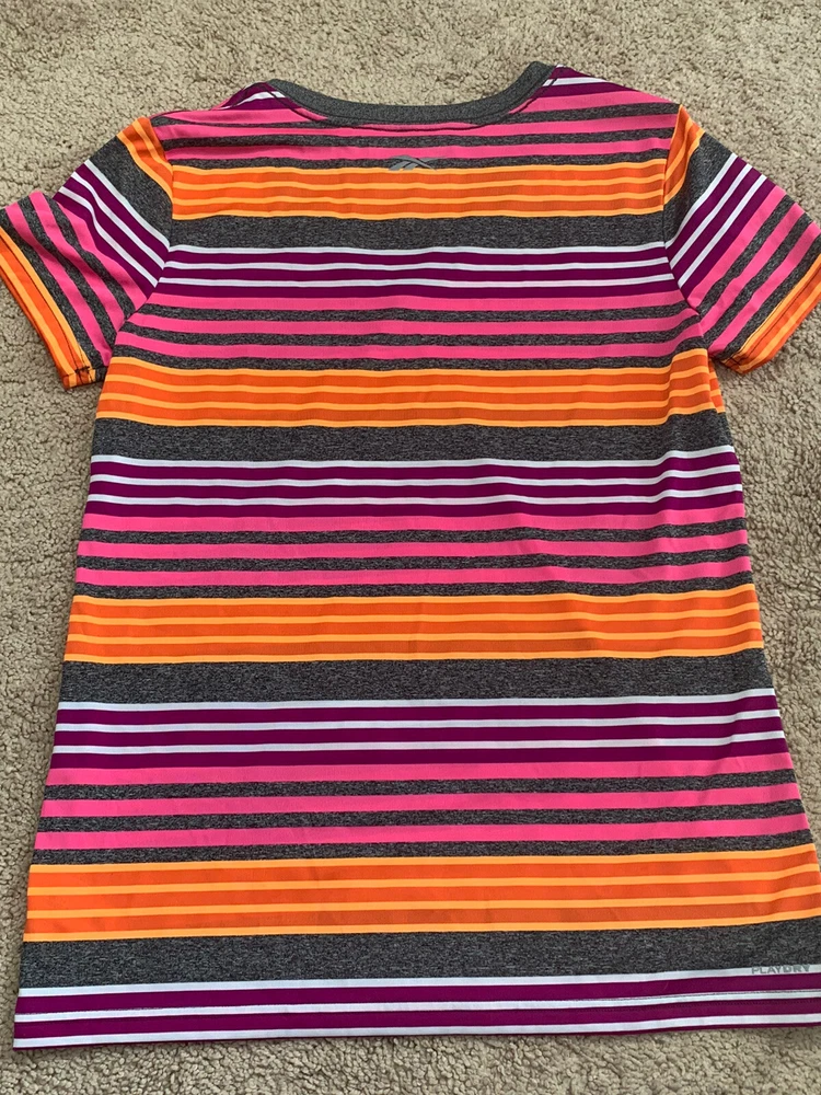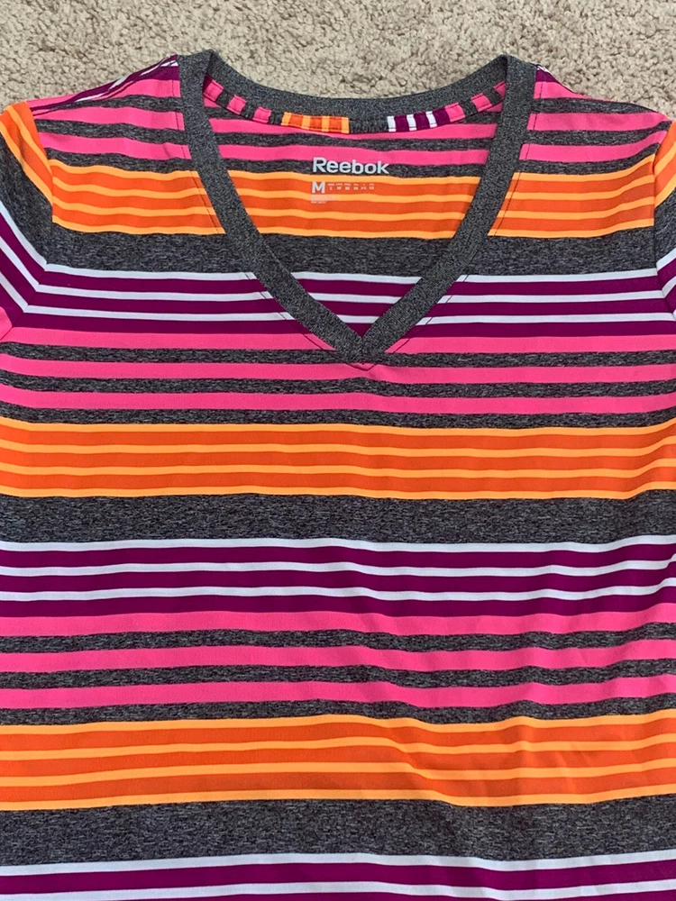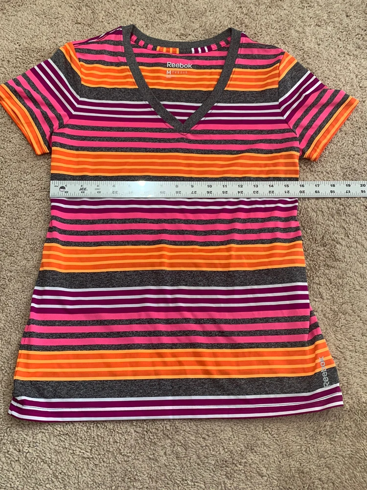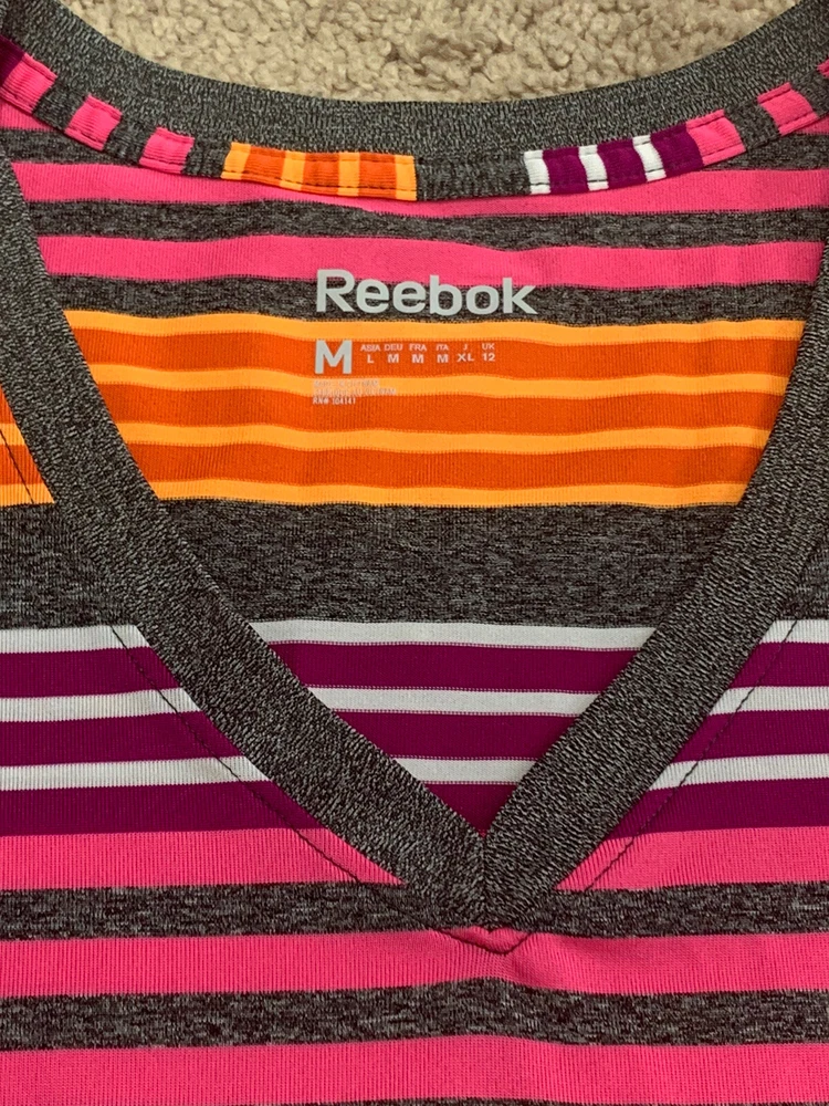 Item is preowned in great condition Reebok Womens shirt. Items are carefully inspected and sealed after photos. We cannot check additional measurements or details for you. Please note, item measurements are approximate and in the photos. Previous washings may change the sizing. Please compare our measurement photos to your favorite garments to ensure fit. Colors remain vivid, we store our items in a smoke free environment If the item is pre-owned, it's cleaned per eBay standards. We do not use any freshener or scents. Shipping and Return Details We ship daily so that you receive your item quickly. I have a 30 day return policy. Please feel free to ask any questions you may have. I try to answer as quickly as possible.