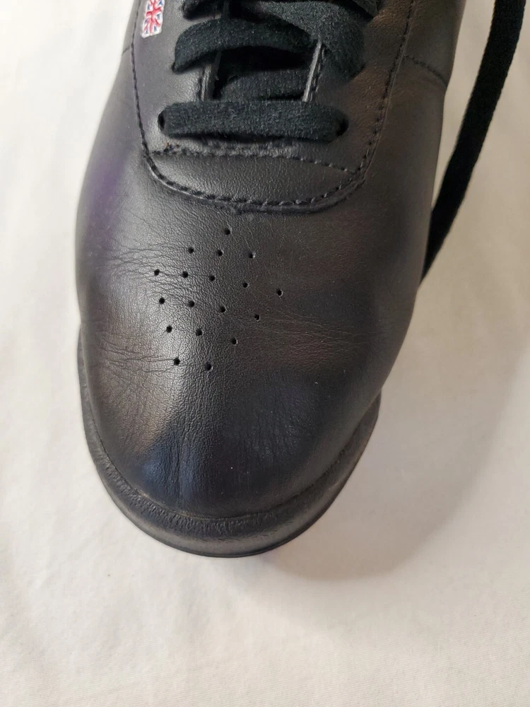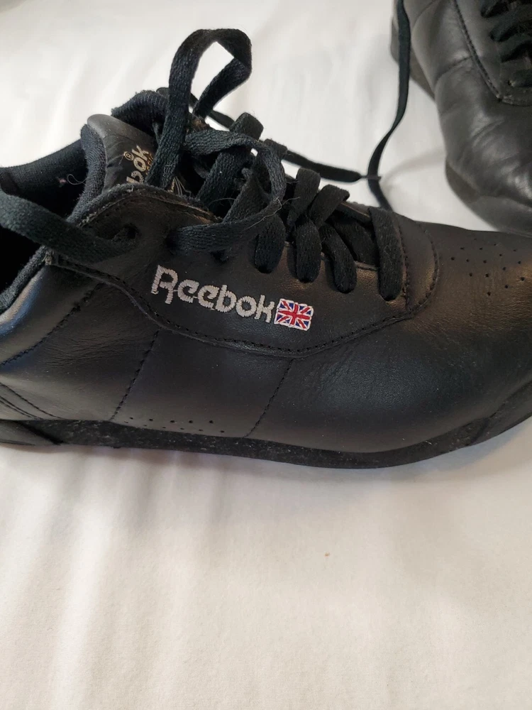 Shoe Width: Standard Model: Reebok Princess Department: Women Color: Black Style: Sneaker UK Shoe Size: 6 US Shoe Size: 8.5 Theme: Princess Vintage: Yes Closure: Lace Up Features: Comfort, Cushioned Upper Material: Synthetic Style Code: 21475 Pattern: Solid EU Shoe Size: 39 Type: Athletic Brand: Reebok Shoe Shaft Style: Low Top