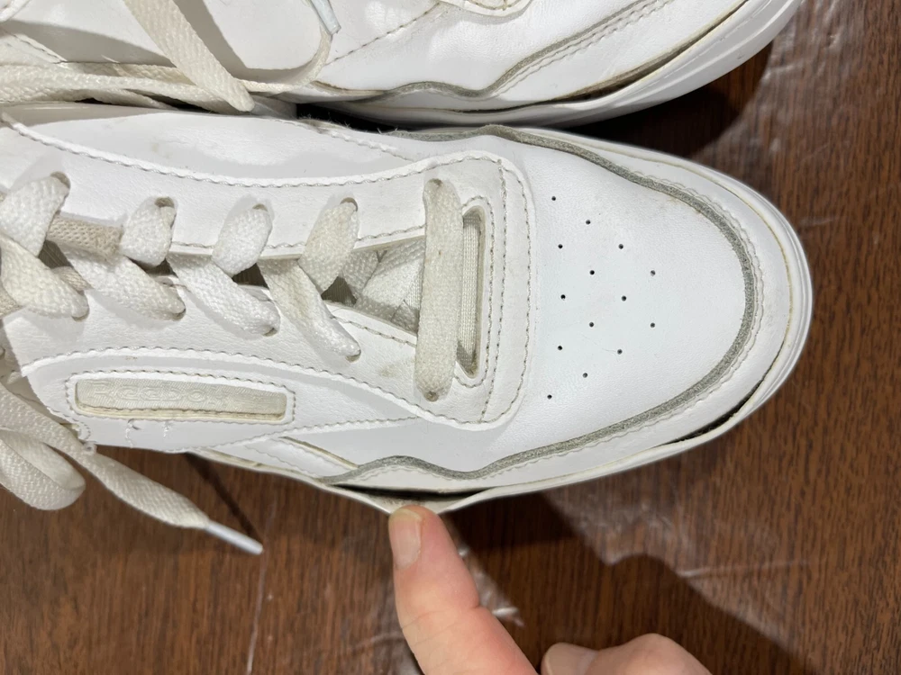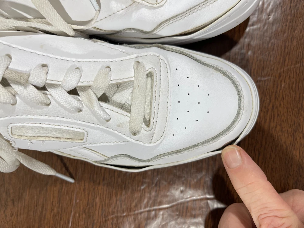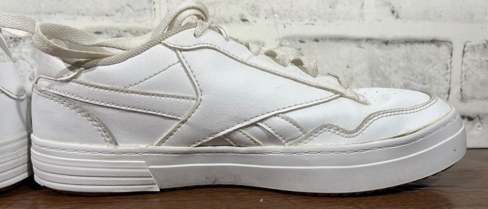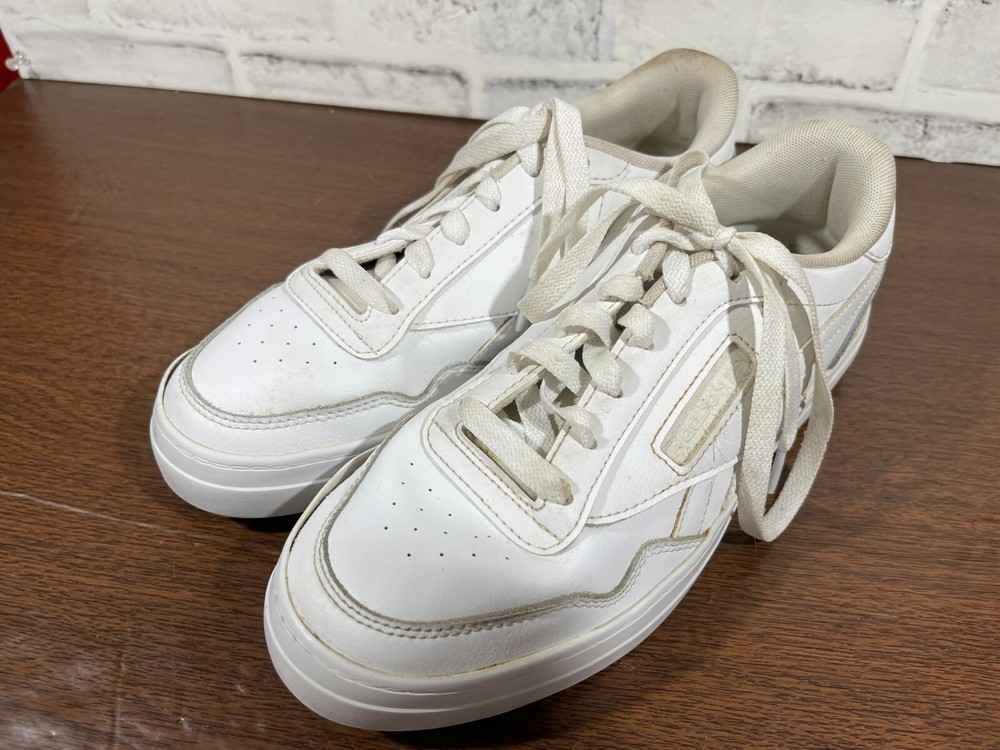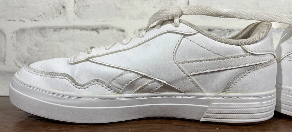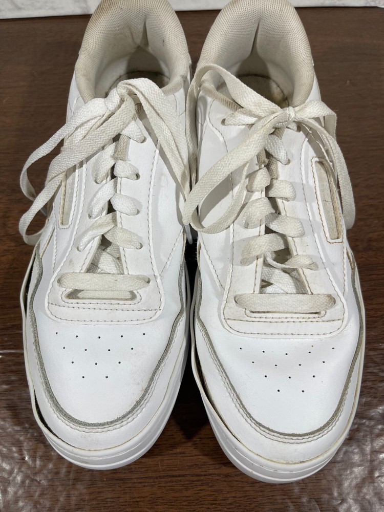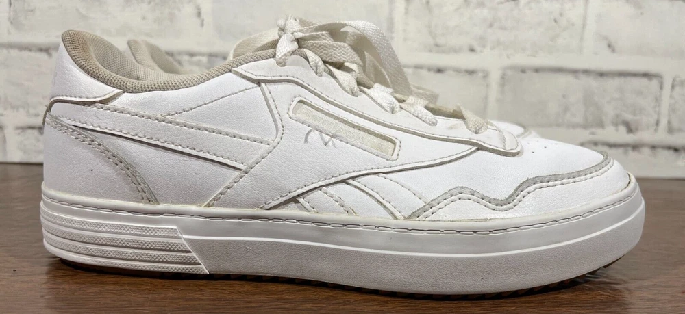 Crafted for the tennis enthusiast, the Reebok Club MEMT sneaker merges classic style with athletic performance. In a crisp white color, this size 8.5 shoe features a durable leather upper and a low-top design for a comfortable fit that's perfect for any casual or activewear occasion. The fabric lining and foam insole ensure your feet stay comfortable, while the rubber outsole offers reliable traction on the court or the pavement. The Reebok Club MEMT sneaker, style code H00680, boasts a sleek, solid pattern with the iconic Reebok logo accenting the lace-up closure. Designed with versatility in mind, this shoe is suitable for all seasons and includes an adjustable feature for an individualized fit. Whether you're serving, volleying, or just enjoying a day out, these sneakers are a classic addition to your footwear collection. Good preowned condition. The insoles and collars are stained and dirty with lint & possibly hair as pictured. The outer soles have a bit of separation from the uppers as pictured. Please see all photos. For clothing specifically, see photos for all measurements and/or any issues if applicable. Pay close attention to the measurements as the size of the garment may quite possibly be different than the actual measurement(s) due to washing, shrinkage, or stretching as these are used clothes. The size in the title is the size on the tag of the garment. See photos for measurements of actual measurements as they may differ. ALWAYS CHECK THE MEASUREMENTS IN THE PHOTOS. This will remove any questions on measurements as well as always cover the possibility of human error in the listing(s) in the case of a typo or oversight. All clothing and shoes have been washed/cleaned, and comes from a smoke free environment. If shoe trees appear in the photos, they are for photography purposes only to illustrate how the shoes look filled out, and are not included. I am available for questions. I accept or negotiate reasonable offers. Have an amazing day. Thank you.