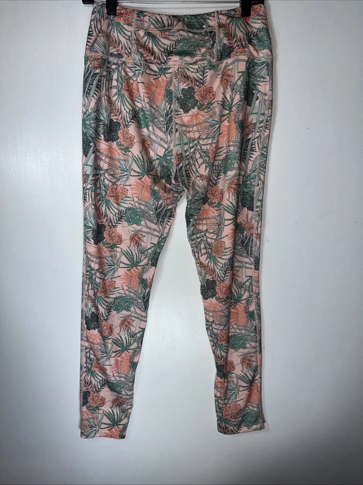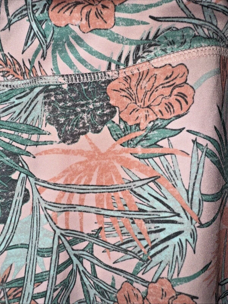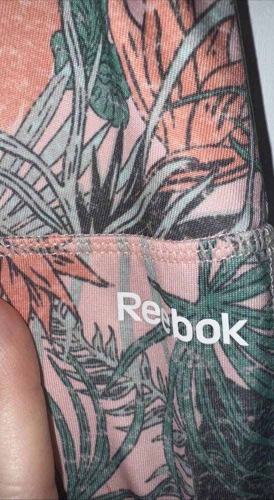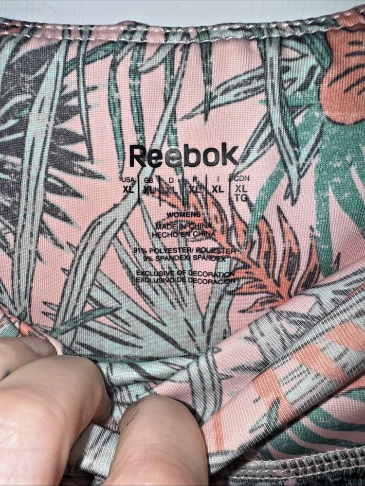 Reebok XL High-Waist Tropical Floral Leggings are vibrant activewear pants for women. Made of polyester and spandex blend, the leggings feature a tropical floral pattern with a compression fit for athletic activities like dance, CrossFit, yoga, Pilates, and running. The high-waist design provides comfort and support, while the stretch fabric ensures a flexible and snug fit. Easy to care for with machine washable instructions.