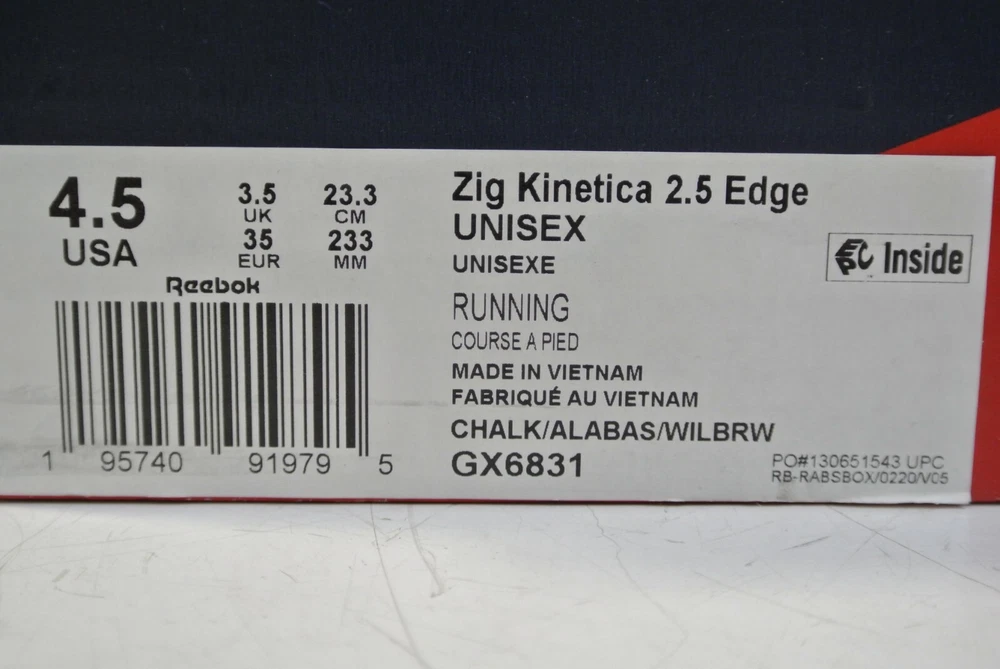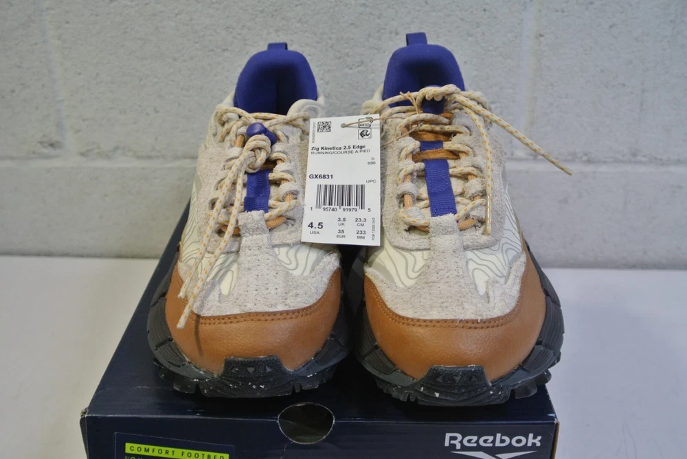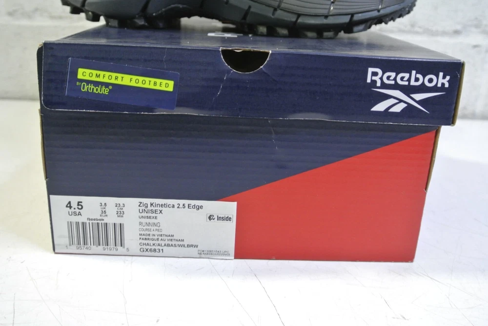 Item available today is the, Reebok ZIG KINETICA 2.5 EDGE Unisex Running Shoe Size 4.5 . This is a new pair of running shoes . Shoes have never been wore. Ready to wear. Please see photos for more details. Items in photos are what come with the listing. Thank you for shopping small business. Terms of Sale Listing is for item and/or accessories shown in photos only. Some states may require a tax be charged at the time of checkout, this is eBay automated. We ship and answer questions Mon-Fri 8am-4pm EST . We stand behind our products and would be happy to assist you if you experience an issue. Please contact us first. We ship to your confirmed PayPal address only using UPS or USPS. Items over $200 may require signature upon delivery. There are no returns on items sold for parts. A RESTOCK FEE UP TO 20% MAY BE CHARGED FOR RETURNS THAT ARE NOT OF FAULT OF THE SELLER OR ITEMS NOT RETURNED IN THE SAME CONDITION. Thank you for shopping small business! Shipping Information Only ships within the Continental United States with one business day processing time. LM 04 /01/2025 ( B3 )