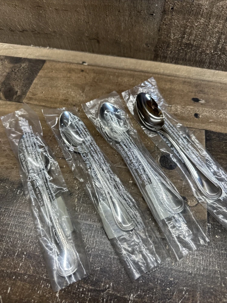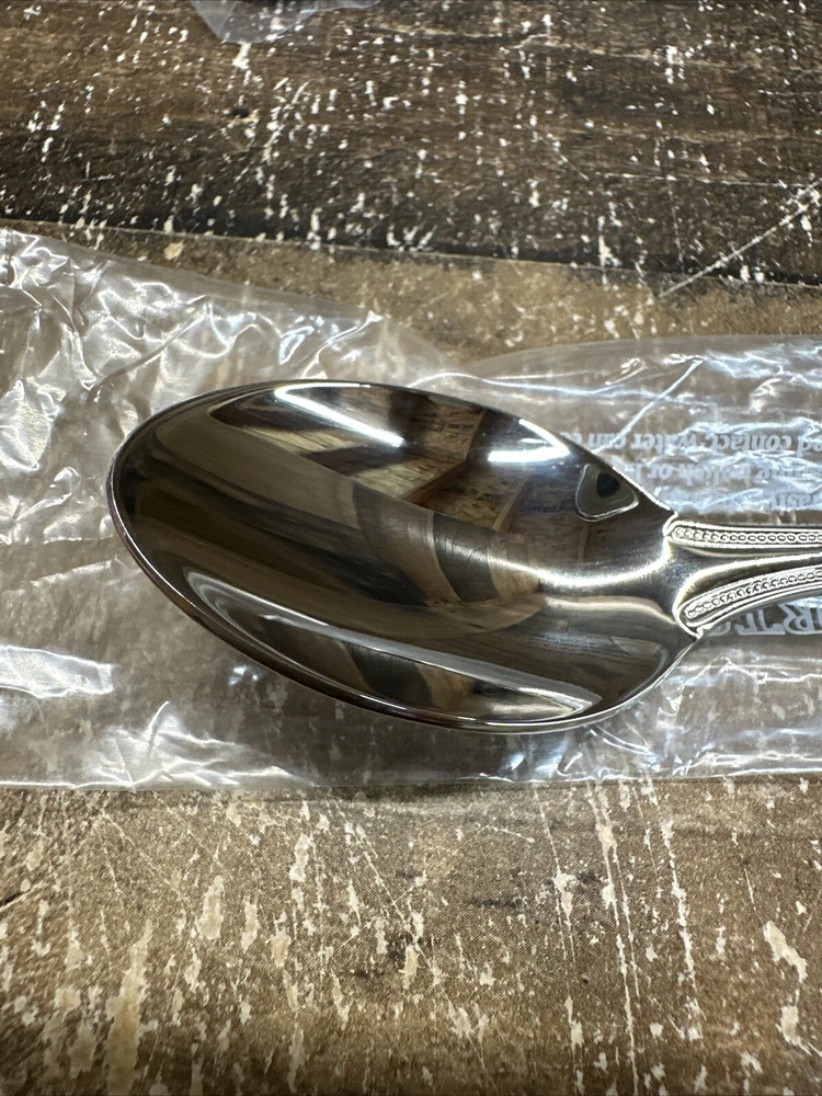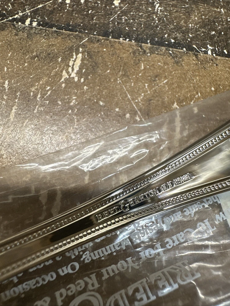 Add a touch of elegance to your tea time with this set of two Reed & Barton Boston Pearl Teaspoons. Crafted from 18/8 stainless steel, these teaspoons feature a beautiful beaded handle pattern that complements their glossy finish. The silver color adds a classic touch that is perfect for any occasion. Made in Korea, these teaspoons are perfect for those who appreciate quality and style. Whether you're hosting a formal tea party or enjoying a casual cup of tea, these teaspoons are sure to impress. Add them to your collection today and enjoy their timeless beauty for years to come.