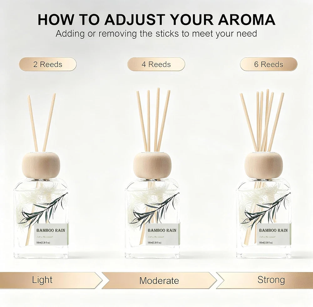 Store New Arrivals Add to Favorite View Feedback Contact Reed Diffusers for Home, Bamboo Rain Scent 100Ml (3.38Oz) | Long-Lasting Natural Scented Oil for Use in Home, Bathroom, Office & Room Decor | Aromatherapy Air Freshener Description Item model number Reed Diffuser Oil Unit Count 4.0 Fluid Ounces Capacity 4.06 Fluid Ounces Number of Items 1 Color B Special Feature Kid Safe, Pure Material Glass, natural essential oil Item Weight 4.2 ounces Auto Shutoff No Scent bamboo rain Product Dimensions 3"L x 2"W x 7.3"H 🌿 Experience The Essence of a Fresh Bamboo Rain Forest: Escape the everyday with our captivating Bamboo Rain scent, a crisp and clean fragrance designed to transform your space. Imagine the serene, uplifting aroma of dewy bamboo and green leaves after a gentle rainfall. This powerful aromatherapy diffuser is perfect for creating a spa-like retreat in your home, helping to reduce stress and promote a sense of well-being and calm focus. ⏳ Set It & Forget It for Months of Continuous Fragrance: Tired of constantly spraying air fresheners? Our reed diffuser kit offers a truly hassle-free solution. Simply place the natural reeds into the elegant 100ml bottle and enjoy a consistent, long-lasting fragrance that requires no maintenance. Unlike candles or plugins, this set provides up to 60 days of uninterrupted, clean scent, making it the ultimate low-maintenance air freshener for your busy lifestyle. 🛡️ Premium, Non-Toxic Ingredients for a Healthier Home: Breathe easy knowing you're enhancing your air quality safely. We use a high-quality, phthalate-free scented oil blend and all-natural reed diffuser sticks for a consistent and even fragrance throw. This flameless and electricity-free method is a safer alternative for households with children, pets, or for use in any room, providing pure, worry-free fragrance 24/7. ✨ Create an Inviting Ambiance with Natural Home Decor: Elevate your room's aesthetic with a touch of organic elegance. The minimalist design of the glass bottle and natural reed sticks complements any decor style—from modern to bohemian. It’s not just an air freshener; it's a stylish decorative accessory for your bathroom vanity, office desk, or living room, effectively eliminating odors while adding to your decor. 🎁 The Perfect Gift for a Fresh & Clean Home: Searching for a unique and thoughtful housewarming gift, birthday present, or thank you gift? This Bamboo Rain reed diffuser is the answer. Its universally appealing, fresh and aquatic scent is a guaranteed crowd-pleaser. Presented as a complete gift set, it’s the perfect way to help friends or family create a fresh, clean, and welcoming atmosphere in their home. Product description The video showcases the product in use. The video guides you through product setup. The video compares multiple products. The video shows the product being unpacked. Reed Diffuser Set Merchant Video Calm Your Space, Calm Your Mind Long Lasting White Tea Scent Natural & Non-Toxic.Perfect for Yoga, Meditation, and Relaxation Sleep in Elegance Five-star fragrance for your bedroom nightstand Sophisticated Hotel Collection Scent Long Lasting & Relaxing.Create a Peaceful, Elegant Bedroom Natural fragrance for a spa-like bath Fresh Bamboo & Rainfall Scent Long Lasting & Natural. Perfect for Bathroom Relaxation Reed Diffuser Gift Set Elegant Packaging.Spa-Inspired Fragrance.A Gift Everyone Loves.A thoughtful present for housewarmings, birthdays & holidays. How long does the scent of this reed diffuser last? Our reed diffuser gives a long lasting fragrance up to 60–90 days. Popular picks are White Tea for spa freshness and Bamboo Rain for clean, calming vibes. Flip reeds weekly for best scent. Is it safe to use in the bedroom or bathroom? Yes, our natural essential oil diffuser is non-toxic and safe for daily use. The Luxury Hotel Inspired reed diffuser is perfect for bedrooms, bathrooms, and offices. Does it smell like hotels or spas? The Luxury Hotel Collection reed diffuser captures the elegant, relaxing vibe of five-star hotels and spa fragrances, creating a soothing home atmosphere. Why choose a reed diffuser over candles? A reed diffuser is flameless, safe, and provides constant home fragrance. The Bamboo Rain diffuser brings fresh, natural scent without lighting or monitoring. Is this reed diffuser good for gifts? Yes! Our reed diffuser gift set comes in elegant packaging. White Tea offers a spa vibe, while Luxury Hotel fragrance adds a sophisticated touch—perfect for any occasion. ABOUT US Our Mission: We aim to make our customers' homes more sustainable and improved by offering products stocked in US and sourced from various regions of the world. We provide affordable, tested, and high-quality products for our customers. Customer satisfaction is our top priority, and it is important for us to support and stay in touch with you, ensuring you are not left alone in any issue that may arise. Please communicate with us for any problem in the process. We are responsible to help. SHIPPING We are always working hard to ensure your package arrives as soon as possible. Please understand that some factors like weather, high postal traffic, and the performance of shipping companies are outside of our control. We offer free shipping to the lower 48 states and ship within ONLY ONE! business days of payment, usually sooner. We do not accept P.O. Boxes. Please provide a physical address. For shipping outside of the continental USA, we only use eBay's Global Shipping Program.The item is shipped to KY and then sent to the rest of the world. International customers are responsible for all duties and taxes. Continue to check out in order to calculate costs for shipping the item to your country. Messages regarding eBay's Global Shipping Program MUST be directed at eBay EXCLUSIVELY. RETURNS We offer a 30-Day Return Policy on items which you are not completely satisfied with. You have the option for a full-refund or an exchange of the item.