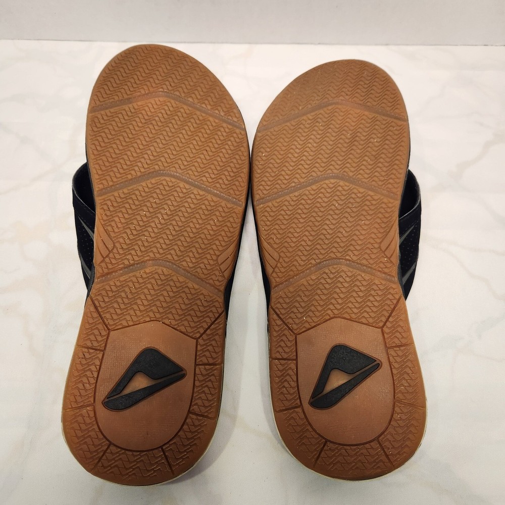 Pre-Owned, in good condition, see photos. Men's size 12, Reef, H-10 flip flop sandal. Black and silver, synthetic upper, rubber outsole. Stored in a smoke-free and pet friendly environment. All orders ship within two business days, combine orders for discount on shipping. Reasonable offers accepted. Thanks for looking!