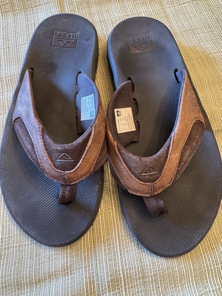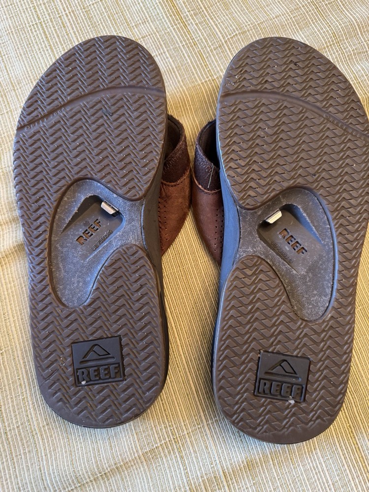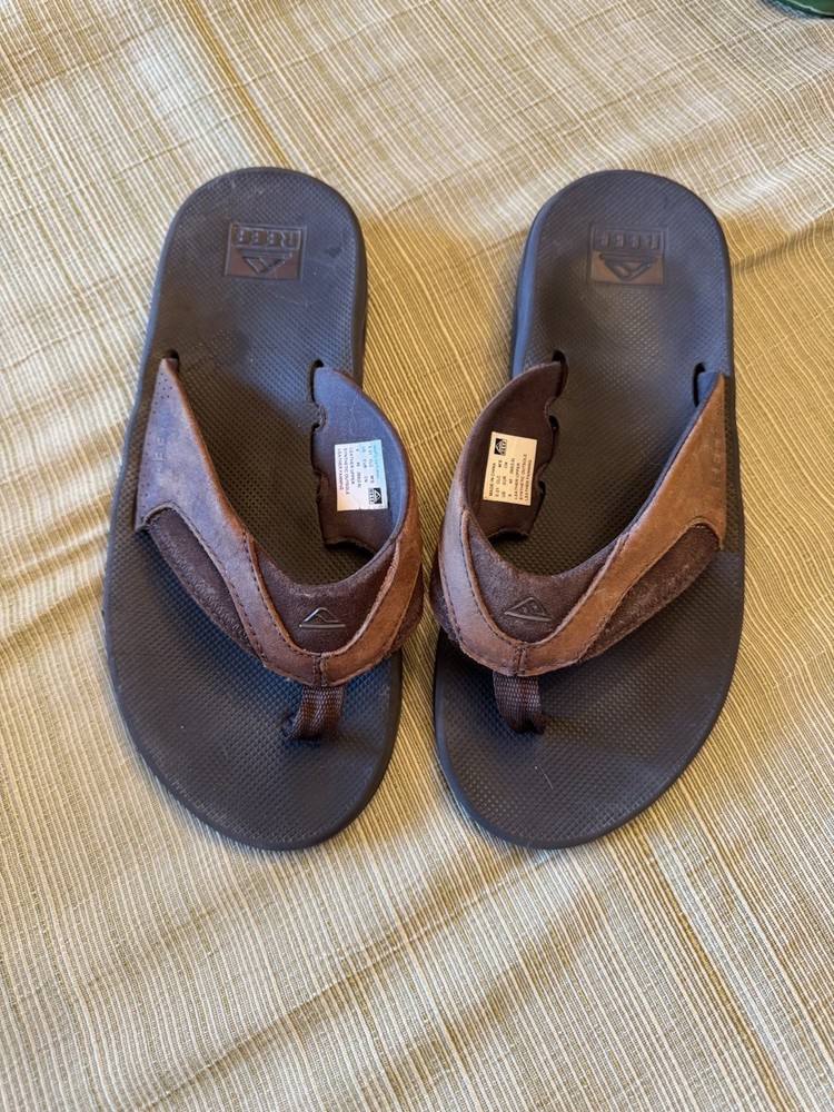 The Reef Men's Leather Fanning Thong Sandal in Brown is a stylish and comfortable choice for men's footwear. Made with high-quality leather, these flip flop-style sandals are perfect for casual wear. With a classic design and a durable construction, these sandals are a reliable option for everyday wear. The brand Reef ensures both quality and style, making these sandals a great addition to any man's shoe collection.