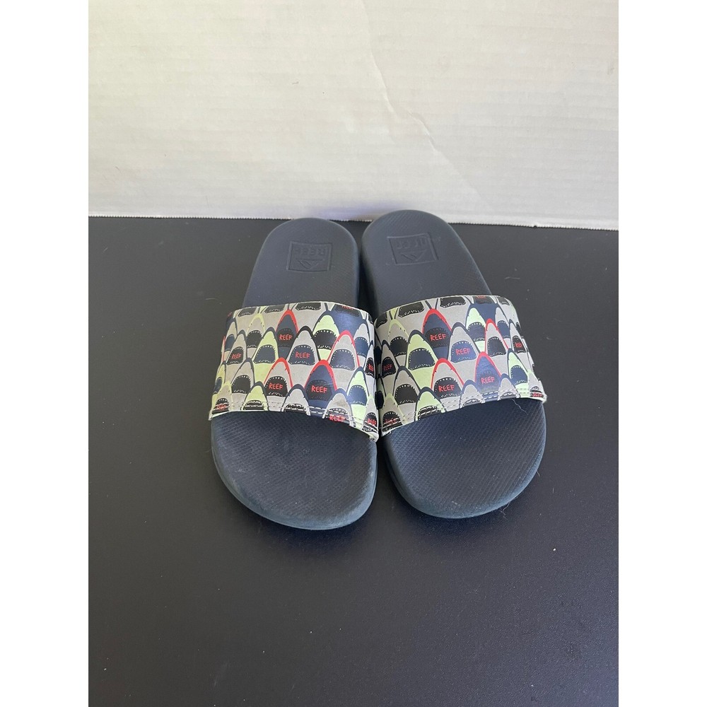 Dive into summer fun with these playful Reef slides! A whimsical shark print adorns the straps, adding a splash of personality to these casual sandals. Imagine the delight on your child's face as they slip into these comfortable and easy-to-wear shoes, perfect for a day at the beach, a trip to the pool, or simply lounging around the house. The slip-on design makes them ideal for an independent kids who want to get ready quickly and head out for adventures. Color: Blue Model: Reef Slides Character: Shark Performance/Activity: Beach, Pool, Casual Character Family: Shark Upper Material: Synthetic Insole Material: Foam Department: Unisex Kids Heel Height: Flat (Under 1 in) Keywords: Reef, slides, sandals, kids, slip on, casual shoes, shark print, summer, beach, pool, footwear, girls, boys