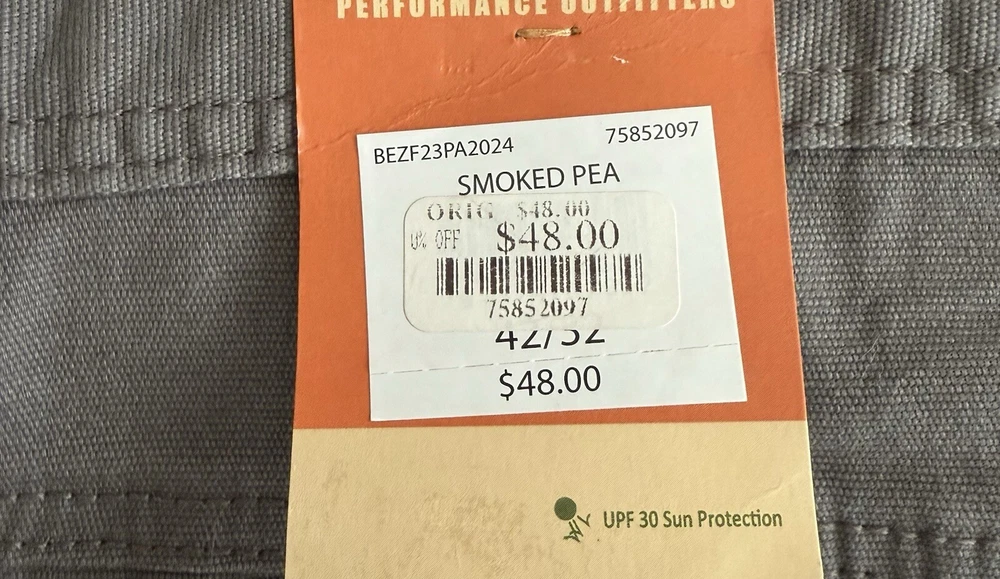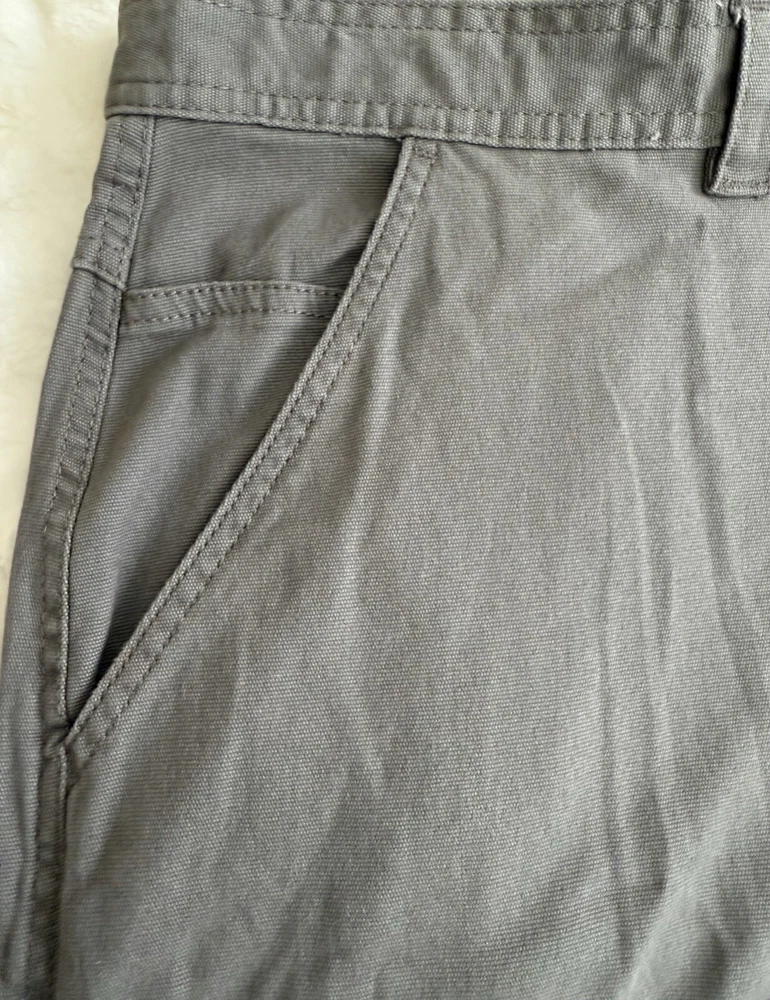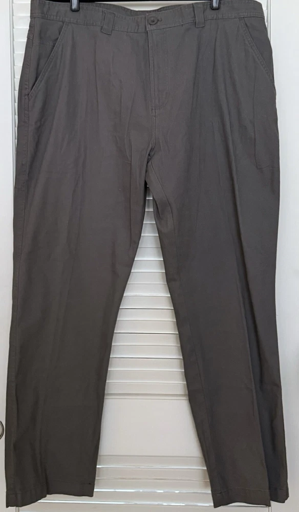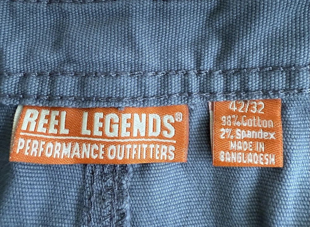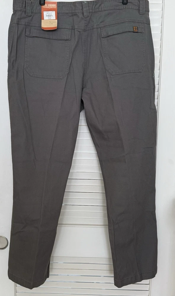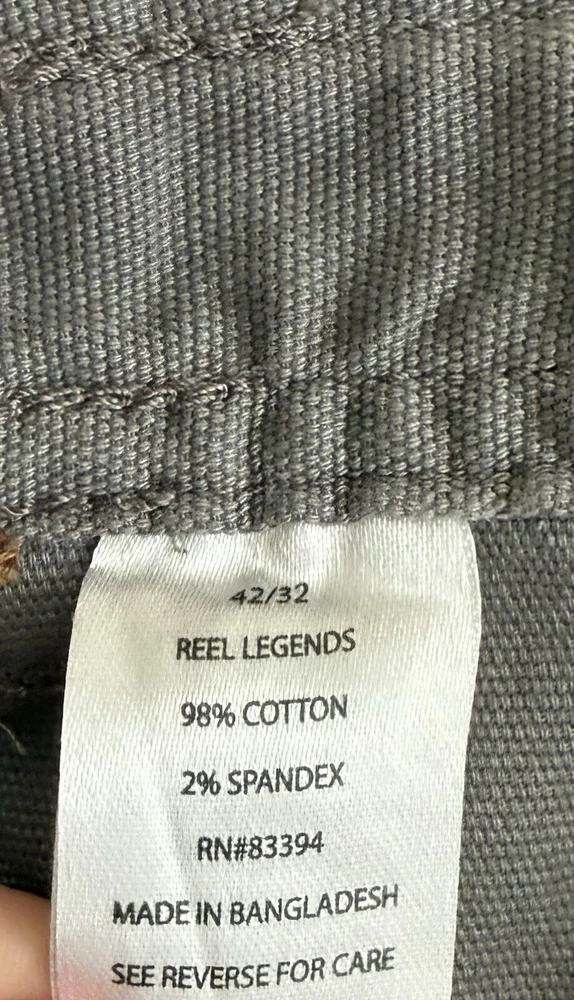 These Reel Legends cotton pants are perfect for any occasion, whether it's for travel, workwear, or casual wear. They come in a stylish gray-smoked pea color and a regular fit, with a straight leg style and a 5-pocket design. The pants have a flat front and a zip and button closure, making them comfortable and easy to wear. These pants are made from high-quality cotton material and are machine washable for easy care. They have a waist size of 42 inches and an inseam of 32 inches, making them suitable for men of all sizes. These khaki pants are perfect for any season, whether it's winter, summer, fall, or spring, and are a great addition to any wardrobe. See photos for new condition.