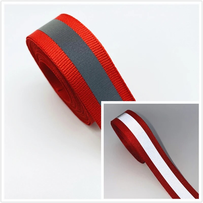 HomeReflective Ribbon Sewing Fabric Tape Polyester Strap Vest Webbing Belt 5yards