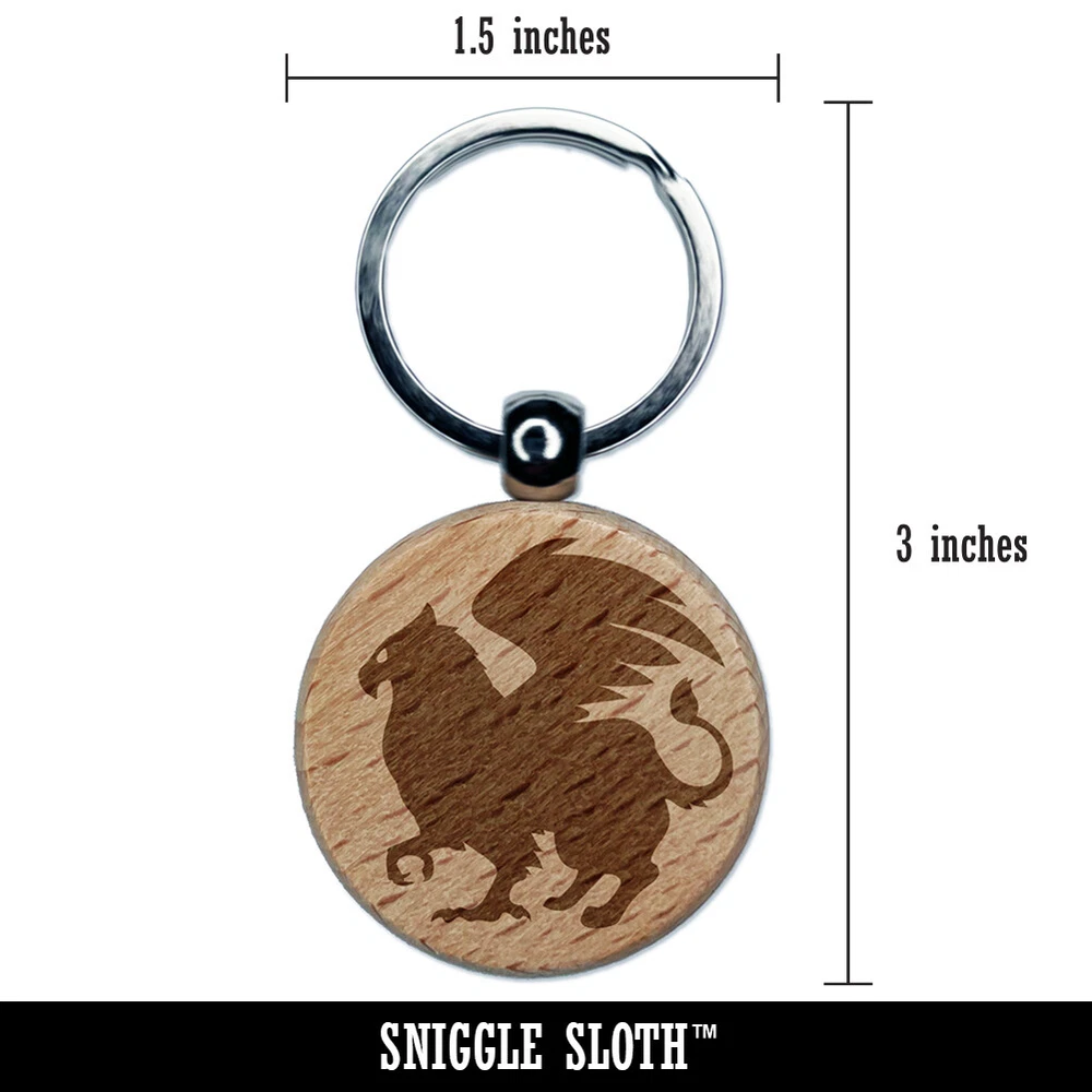 Regal Griffin Fantasy Silhouette Engraved Wood Round Keychain Tag Charm