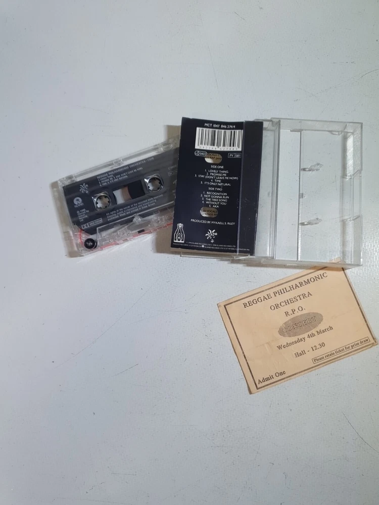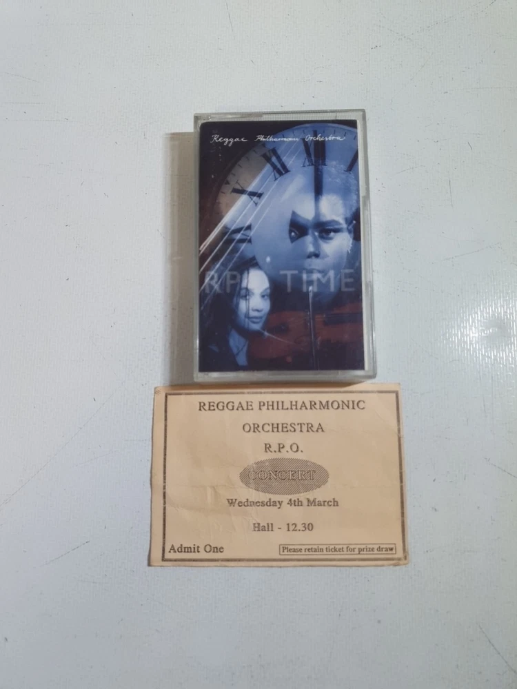 This cassette tape album by the Reggae Philharmonic Orchestra titled 'RPO Time' is a must-have for any music lover. It features a unique blend of pop, reggae, and orchestral sounds that will transport you to the 1990s. The album comes in a standard jewel case and has very good (VG) case and inlay conditions. Extremely rare cassette format. Additionally, this first edition album has an autographed concert ticket, making it a rare and valuable find. The multicoloured cassette tape format adds to the overall aesthetic of the album. This product is perfect for any occasion and is a great addition to any music collection.