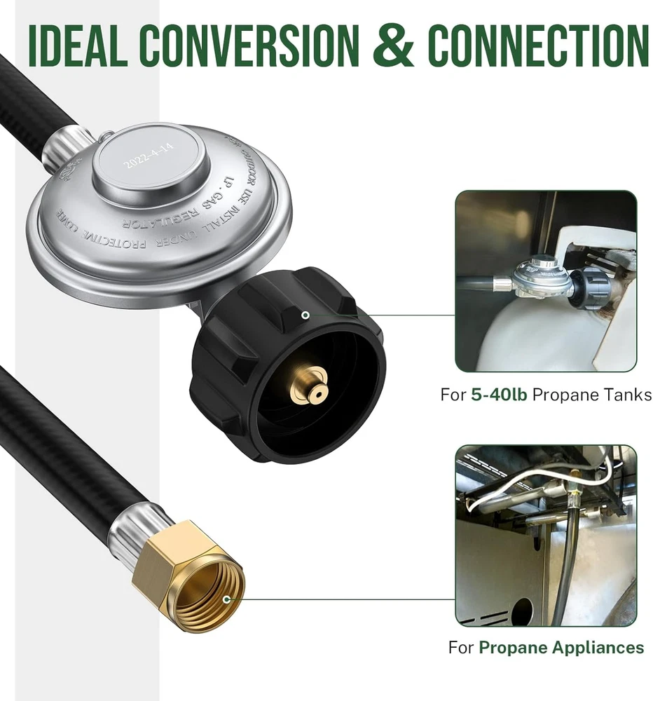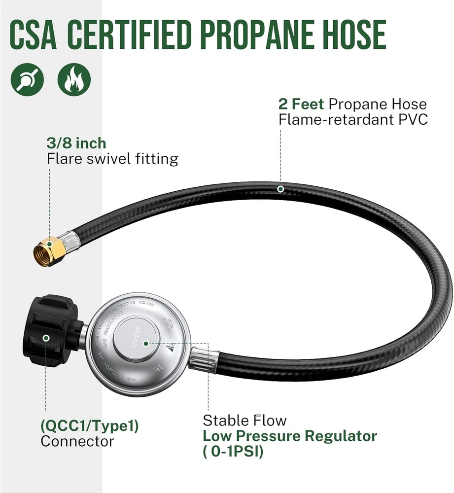 Store New Arrivals Add to Favorite View Feedback Contact Propane Regulator with Hose, 2FT Low Pressure 0-1Psi Gas Regulator for Grill Propane Regulator with Hose, 2FT Low Pressure 0-1Psi Gas Regulator for Grill Product Description Propane Regulator with Hose - 2FT, 0-1Psi Low Pressure Gas Grill Regulator Ensure a safe and efficient grilling experience with this Propane Regulator with Hose . Designed for use with propane grills, this 2-foot propane hose connects your grill to the propane tank and regulates the pressure to provide optimal gas flow. The low-pressure 0-1Psi regulator is perfect for gas grills , delivering a consistent flow of propane for smooth operation. Whether you’re replacing your current regulator or need a backup, this is the ideal choice for your grilling setup. Features 2-Foot Hose Length : The 2-foot hose allows flexible placement of your propane tank, providing extra convenience during grilling. Low Pressure Regulator (0-1Psi) : The low-pressure 0-1Psi regulator ensures safe and consistent propane flow, ideal for gas grills. Versatile Compatibility : Suitable for use with propane grills , this regulator and hose set is perfect for various outdoor cooking needs. Durable Construction : Built for durability, this regulator and hose are designed to withstand high heat and outdoor conditions. Easy to Install : Designed for quick installation, this regulator and hose set connects easily to your grill and propane tank. Specifications Hose Length : 2 feet Pressure : Low-pressure, 0-1Psi Compatibility : Ideal for propane grills Material : Durable construction for outdoor use Includes : Propane regulator and 2-foot hose Possible FAQs What is the pressure range of this regulator? The regulator has a 0-1Psi low-pressure range, perfect for use with gas grills. Is this regulator suitable for high-pressure applications? No, this regulator is designed for low-pressure applications , such as gas grills . What is the length of the propane hose? The hose is 2 feet long , providing flexible placement for your propane tank. Can I use this regulator with other propane appliances? This regulator is specifically designed for gas grills and other low-pressure propane appliances. Is this hose and regulator easy to install? Yes, this set is designed for quick installation with easy connections between the grill and propane tank. Can this regulator be used with larger propane tanks? This regulator is compatible with standard propane tanks typically used for grilling. For larger tanks, check your appliance's specific requirements. Is this regulator suitable for use in cold weather? Yes, this regulator is built to withstand outdoor conditions and is safe for use in colder weather. What kind of hose is included with the regulator? The kit includes a 2-foot hose made from durable materials, designed to handle outdoor use. Can I use this regulator with a barbecue or portable grill? Yes, it is compatible with most gas grills and barbecue models that require low-pressure propane. Do I need any additional accessories for installation? No additional accessories are needed; this kit includes everything you need to connect your propane tank to your grill. Item model number BAN1106 Product Dimensions 8.26 x 7.1 x 2.36 inches Country of Origin China Item Weight 10.8 ounces Size 2 FEET PRODUCT DIMENSIONS : 7.1 inches x 8.26 inches x 2.36 inches. Weight: 10.8 oz About Us Welcome to Perishey, your premier destination for high-quality products at unbeatable prices. Our commitment to excellence ensures that you receive top-notch service and premium items across a variety of categories. Our professional customer support team is always ready to assist you with any inquiries or needs, ensuring a seamless shopping experience. We take pride in serving you and strive to bring a smile to your face with our exceptional service and products. Visit our eBay store to explore our full range of offerings and discover the great deals we have in store for you. Thank you for choosing Laelegencia. Payment policy We have eBay Managed Payments, allowing you to pay with any payment method that eBay accepts. Please ensure that your shipping addresses are accurate. Immediate payment is required before we can send out your package. Shipping policy We are always working hard to ensure your package arrives as soon as possible. Please understand that some factors like weather, high postal traffic, and the performance of shipping companies are outside of our control. In most cases, your package will arrive before due time as it is a high priority for us. If there are any unexpected delays, please let us know and we will take care of it immediately. We have multiple locations in the US; residents of these states will be charged tax according to the state they reside in. Tax information is available at checkout. Returns We are committed to your happiness. That’s why we offer a 30-Day Return Policy on items that you are not completely satisfied with. You have the option for a refund or an exchange of the item. No returns are available on items shipped outside of the USA.