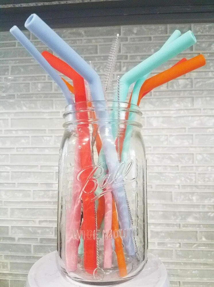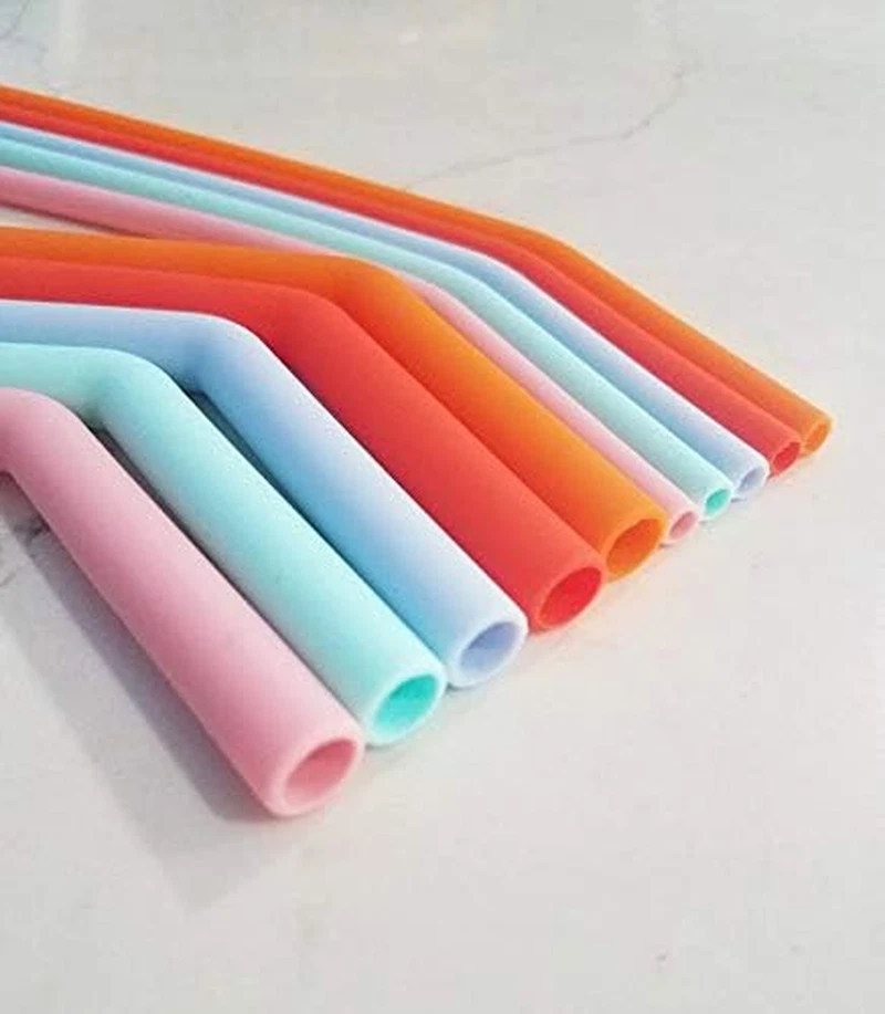 Regular & Jumbo Reusable Silicone Straws- Set of 10 with Carrying Bag- BPA Free-