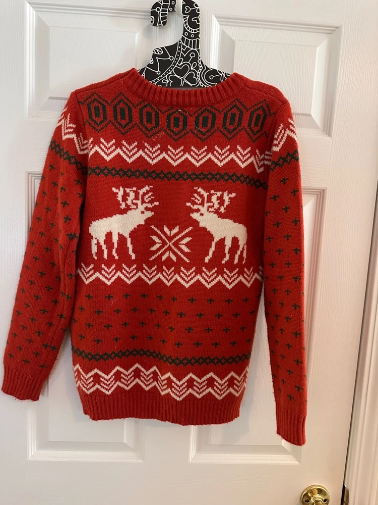 Reindeer Christmas Red Sweater Size M Crewneck pullover Pit to pit 18” Total length 25” I ship daily!