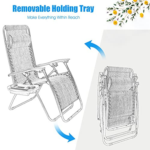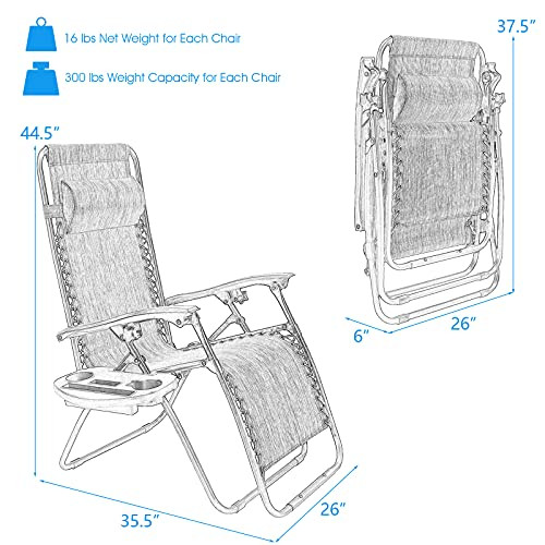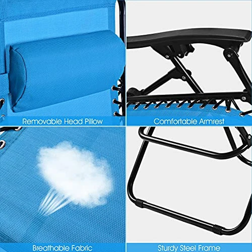 Return Policy Fast Delivery Trusted seller Folding Zero Gravity Reclining Textilene Lounge Chairs, Outdoor Adjustable Patio w/Pillows & Cup Holder Trays for Backyard, Beach, Poolside (BL) Product Description 【Folding Design】 For easy stacking and storage, this gravity chair can be folded into one third. And it is lightweight, which can be easily moved from room to room. 【Cup Holder Tray】 A cup holder tray to place beverage, magazine, phone or other small items for convenient accessibility. A detachable headrest for better relaxing experience. 【Multi Use Occassion】 It is ideal for enjoying both your indoor and outdoor time. It can be applied at anyw you want, such as bedroom, balcony, garden and courtyard. It would provide you a better lounge time. 【Durable Construction】 Features from sturdy aluminum seat posts and steel leg posts, this recliner is sturdy enough to hold people up to 300Lbs. It is ventilated in summer and you can also place cushions on it for winter using. Its knit technique and superior material ensures its long-term durability. 【Size Information】 Weight Capacity: 300 lbs. Item Size: 35.5''- 65''(L)× 26''(W) ×44.5''(H). Folding Size: 37.5''(L)× 26''(W)× 6''(H). Shipping Returns Payment Shipping Shipping is FREE to all addresses other than APO/PO boxes in the lower 48 states. All our stock ships from US-based warehouses. Shipped via USPS or UPS (depending on location and package weight) Unless stated otherwise, all orders will ship within 24-72 hours of your payment being processed. Check our feedback to see the great reviews of FAST shipping we offer. Returns Seller does not accept returns Payment We currently accept payment via eBay managed payments only. Once payment is cleared, we will dispatch your shipment within 1-3 business days. Please refer to the "Shipping" tab for more information regarding shipping speed to your destination.