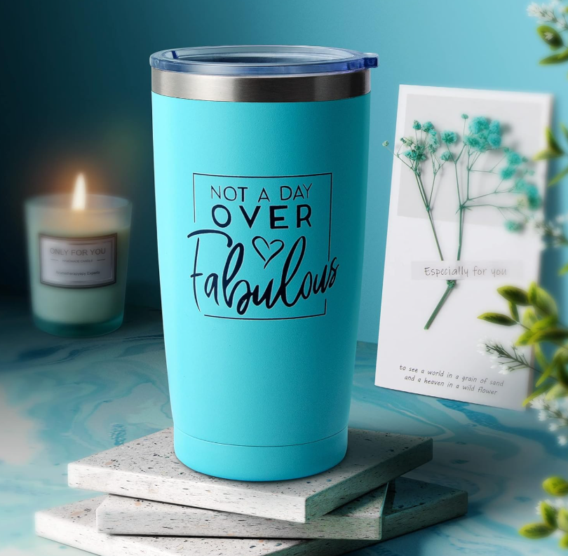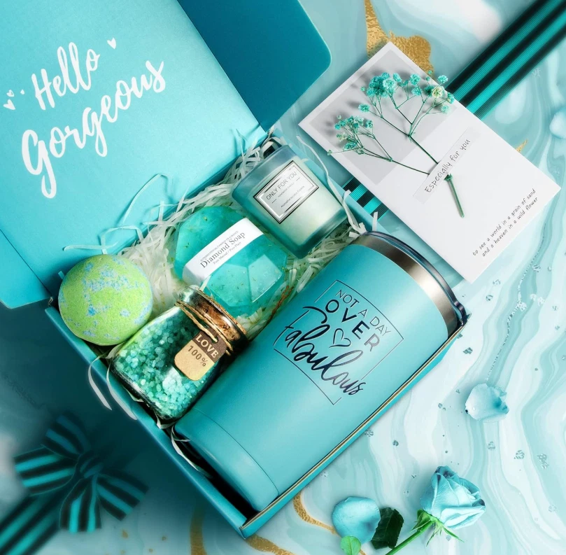 Birthday Gifts for Women - Every item in our birthday box is carefully selected and well wrapped. Perfect for mom, daughter, sister, best friend, aunt, grandma, wife or for any special lady! Valentines Day Gifts for Her - Give her this perfect gift set for women, Make Her Feel Pampered. Whether it's a birthday, Anniversary, Valentines, Thanksgiving, Xmas, it will make her smile and think of you 5 Pcs Spa Gift Basket Set: Includes 20oz insulated tumbler, diamond soap, bath bomb, bath salt, scented candle, and a special message card. Unforgettable unboxing for an impressive first sight Unique Gift Ideas for Women - Beautifully Packaged. You do not have to worry about a thing! We make gift giving fun and easy! Make Her Feel Pampered on Christmas, her birthday, or anniversary... Happiness Guaranteed: Treat her with a fabulous gift. Shop confidently, and personalize your message by selecting "This order contains a gift." If unsatisfied, return for a no-questions-asked refund. Product description Original and unique gifts for women Perfect for mom, daughter, sister, best friend, aunt, grandma, wife or for birthday or any special lady! Fabulous Christmas Gifts For Women Arrives bursting with amazing scents. Unforgettable unboxing will impress her at first sight Contains 6 gifts beautifully packaged -1 x 20oz insulated coffee tumbler: with the words "Not a Day Over Fabulous", keeps cold up to 9 hours and hot up to 6 hours -1 x greeting card with delicate dried flowers -1 x pure handmade diamond soap -1 x scented candles: Vanilla/soy wax -1 x bath bomb:Mint/100g -1 x bath salt:Sea Salt/100g It's the perfect choice for LAST-MINUTE or long-distance gifts that matter Whether it's a Anniversary, Birthday, Valentines, Thanksgiving, Christmas, this luxury spa gift set for women will make her smile and think of you.