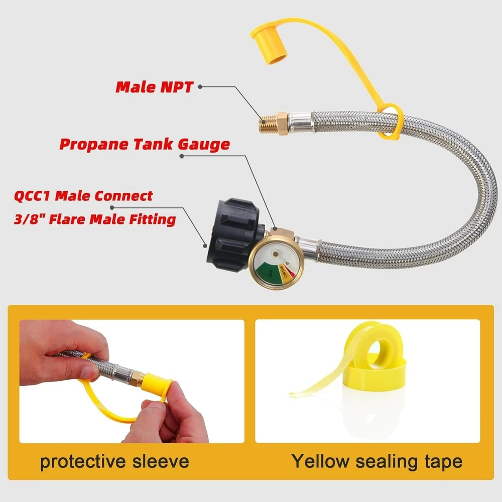 Reliable 2-Pack 15-inch RV Propane Hose with Gauge for Safe Outdoor Cooking ‹ › ‹ › ‹ › ‹ › ‹ › ‹ › ‹ › ‹ › Reliable 2-Pack 15-inch RV Propane Hose with Gauge Your trusted companion for safe outdoor cooking adventures! Product Features: Size: 15-inch, 1/4 inch ID, with 1/4 inch outer diameter Stainless steel braided design that ensures durability Quick installation with tool-less attachment to propane tanks and regulators Includes a color-coded dial for easy visibility of propane levels Compatible with a range of tanks from 5lb to 4lb LP gas tanks Solid brass fittings provide a secure and airtight connection Use with BBQ grills, RVs, camping equipment, and outdoor cooking Benefits: Ensures safe and efficient connection for your outdoor cooking needs. Quick and easy setup allows you to focus on enjoying your outdoor experience. Durable materials offer reliable performance with every use. Color-coded gauge allows for quick monitoring of propane levels, eliminating guesswork. Versatile connection options for added convenience and flexibility. Why Choose Our RV Propane Hose? Our Reliable 2-Pack 15-inch RV Propane Hose with Gauge sets the standard for safety and convenience in outdoor cooking. Crafted from durable stainless steel and solid brass, you can trust that these hoses will withstand the rigors of adventure, providing a secure and airtight connection for all your propane needs. With tool-less attachment and a color-coded gauge for easy monitoring, cooking outdoors has never been simpler. Don’t compromise on safety or convenience during your outdoor culinary escapades. Choose our RV Propane Hose for peace of mind and exceptional performance. Order your set today! Shipping Free & Fast Shipping - We offer free shipping to most of the USA with a normal delivery time of 3-7 days. However, due to the current situation, additional delivery time (up to 3 weeks) may be required for some items. Alternative Carriers - We may use alternative carriers (e.g. USPS, FedEx, UPS, etc.) to ensure your package arrives safely and on time. Due to the use of multiple carriers, we are unable to provide a tracking number automatically. Handling Time - Orders are processed and shipped within 1-2 business days of receiving cleared payment. Shipping Restrictions - Shipping to Alaska, Hawaii, Puerto Rico, Guam, and other US territories may incur shipping charges or delivery restrictions. Please contact us before ordering, or your order can be refunded/cancelled. State Restrictions - There may be restrictions based on your state of purchase. For example, certain items may not be shipped to California due to state regulations. Contact for Tracking Updates - If you require tracking updates or have any concerns about the delivery of your order, please feel free to contact us, and we will be happy to assist you. Return 30-Day Hassle-Free Returns - We want you to be completely satisfied with your purchase. If you are not, you can return the item within 30 days of receiving it for a full refund or exchange. Easy Return Process - To start a return, simply contact us and we will provide you with a prepaid return shipping label and detailed instructions. Restocking Fee - There are no restocking fees for returns. However, the buyer is responsible for return shipping costs if the return is not due to a seller's error. Refund Processing Time - Refunds will be processed within 5 business days of receiving the returned item in its original condition. Payment We accept all major credit cards, PayPal, and Apple Pay for your convenience. Your payment information is secure and encrypted to ensure a safe and seamless transaction. Please complete your payment within 3 days of purchase to avoid any delays in shipping. Feedback Your feedback is extremely important to us. We strive to provide the best products and customer service possible. If you are satisfied with your purchase, please take a moment to leave us a positive review. If you have any concerns or issues with your order, please contact us before leaving negative feedback. We are committed to resolving any problems and ensuring your satisfaction. Contact Us If you have any questions or concerns, please feel free to reach out to our customer support team. You can contact us through the eBay messaging system. We are available Monday to Friday, 9:00 am to 5:00 pm EST, and we will do our best to respond to your inquiry within 24 hours. Buy it now and enjoy a pleasant shopping experience! Manufacturer Part Number: RV Propane Hoses UPC: Not Set MPN: RV_Propane_Hoses Unit Quantity: 2 Brand: Unbranded Part Type: Accessories Country/Region of Manufacture: RV Propane Hoses Warranty: Unspecified Length Unit Type: lb