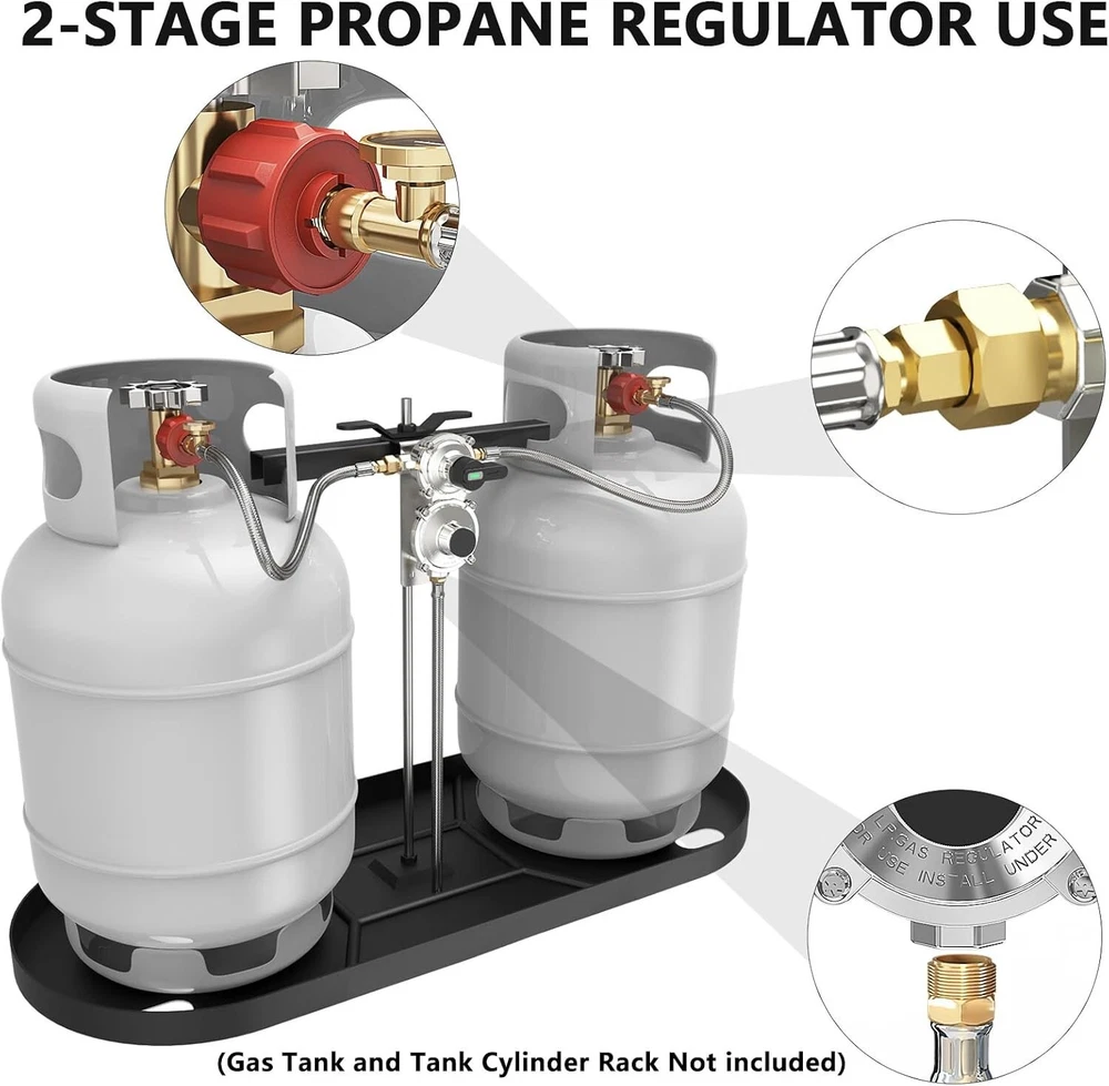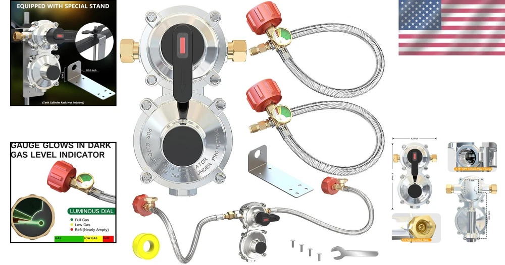 Reliable 2-Stage Propane Regulator & Hoses for RV/Camping - Uninterrupted Supply ‹ › ‹ › ‹ › ‹ › ‹ › ‹ › ‹ › ‹ › ‹ › ‹ › Reliable 2-Stage Propane Regulator & Hoses for RV/Camping Uninterrupted Supply Upgrade your outdoor experience with our 2-Stage RV Propane Regulator, ensuring a seamless and consistent gas supply for all your cooking, heating, and more. Features: Automatic Changeover: Connect up to 2 propane tanks, automatically switching from primary to reserve to maintain an uninterrupted flow. Easy Monitoring: Indicator light turns red to alert when propane needs to be refilled; equipped with a dial gauge that glows in the dark for easy reading. Durable & Weather-Resistant: Made from stainless steel braided hoses for superior durability, anti-aging, and heat-resistant performance. Specifications: Master Cylinder Capacity of 210,000 BTU/Hour; Reserve Cylinder at 130,000 BTU/Hour; constructed with 100% solid brass fittings. Wide Compatibility: Suitable for RVs with dual propane tanks, ensuring safe and reliable gas supply for all your propane-powered devices. Benefits: Reliable and constant gas pressure enhances the efficiency of your appliances. Seamless switching between tanks provides peace of mind while on the road. Easy installation, compatible with a range of propane tanks from 5-40 lbs. Peaceful camping experiences without worries about running out of propane unexpectedly. Why choose our Reliable 2-Stage Propane Regulator? Elevate your RV adventures with the ultimate peace of mind. Our 2-Stage Auto Changeover LP Propane Gas Regulator serves as your trusted companion, expertly designed to ensure your propane supply is both secure and efficient. Its robust materials stand the test of outdoor environments while providing you with user-friendly features. Don’t compromise on the reliability of your RV’s gas supply. Embrace convenience and safety; order your 2-Stage Propane Regulator and Hoses today! Package Includes: 1 PC 2 Stage Auto Changeover RV LP Propane Regulator 2 Pack 18'' Stainless Braided QCC1 1/4" Inverted Male Flare RV Pigtail Propane Hoses with Gauge 1 Roll Sealing Tape 1 Wrench Shipping Free & Fast Shipping - We offer free shipping to most of the USA with a normal delivery time of 3-7 days. However, due to the current situation, additional delivery time (up to 3 weeks) may be required for some items. Alternative Carriers - We may use alternative carriers (e.g. USPS, FedEx, UPS, etc.) to ensure your package arrives safely and on time. Due to the use of multiple carriers, we are unable to provide a tracking number automatically. Handling Time - Orders are processed and shipped within 1-2 business days of receiving cleared payment. Shipping Restrictions - Shipping to Alaska, Hawaii, Puerto Rico, Guam, and other US territories may incur shipping charges or delivery restrictions. Please contact us before ordering, or your order can be refunded/cancelled. State Restrictions - There may be restrictions based on your state of purchase. For example, certain items may not be shipped to California due to state regulations. Contact for Tracking Updates - If you require tracking updates or have any concerns about the delivery of your order, please feel free to contact us, and we will be happy to assist you. Return Please see our eBay Return Policy. Thank you. Payment We accept all major credit cards, PayPal, and Apple Pay for your convenience. Your payment information is secure and encrypted to ensure a safe and seamless transaction. Please complete your payment within 3 days of purchase to avoid any delays in shipping. Feedback Your feedback is extremely important to us. We strive to provide the best products and customer service possible. If you are satisfied with your purchase, please take a moment to leave us a positive review. If you have any concerns or issues with your order, please contact us before leaving negative feedback. We are committed to resolving any problems and ensuring your satisfaction. Contact Us If you have any questions or concerns, please feel free to reach out to our customer support team. You can contact us through the eBay messaging system. We are available Monday to Friday, 9:00 am to 5:00 pm EST, and we will do our best to respond to your inquiry within 24 hours. Thank you for supporting our small family business! Manufacturer Part Number: RV Propane Regulator UPC: Not Set MPN: Not Set Unit Quantity: 2.66 Brand: Unbranded Part Type: Accessories Country/Region of Manufacture: Not Set Warranty: 1 Year Unit Type: lb